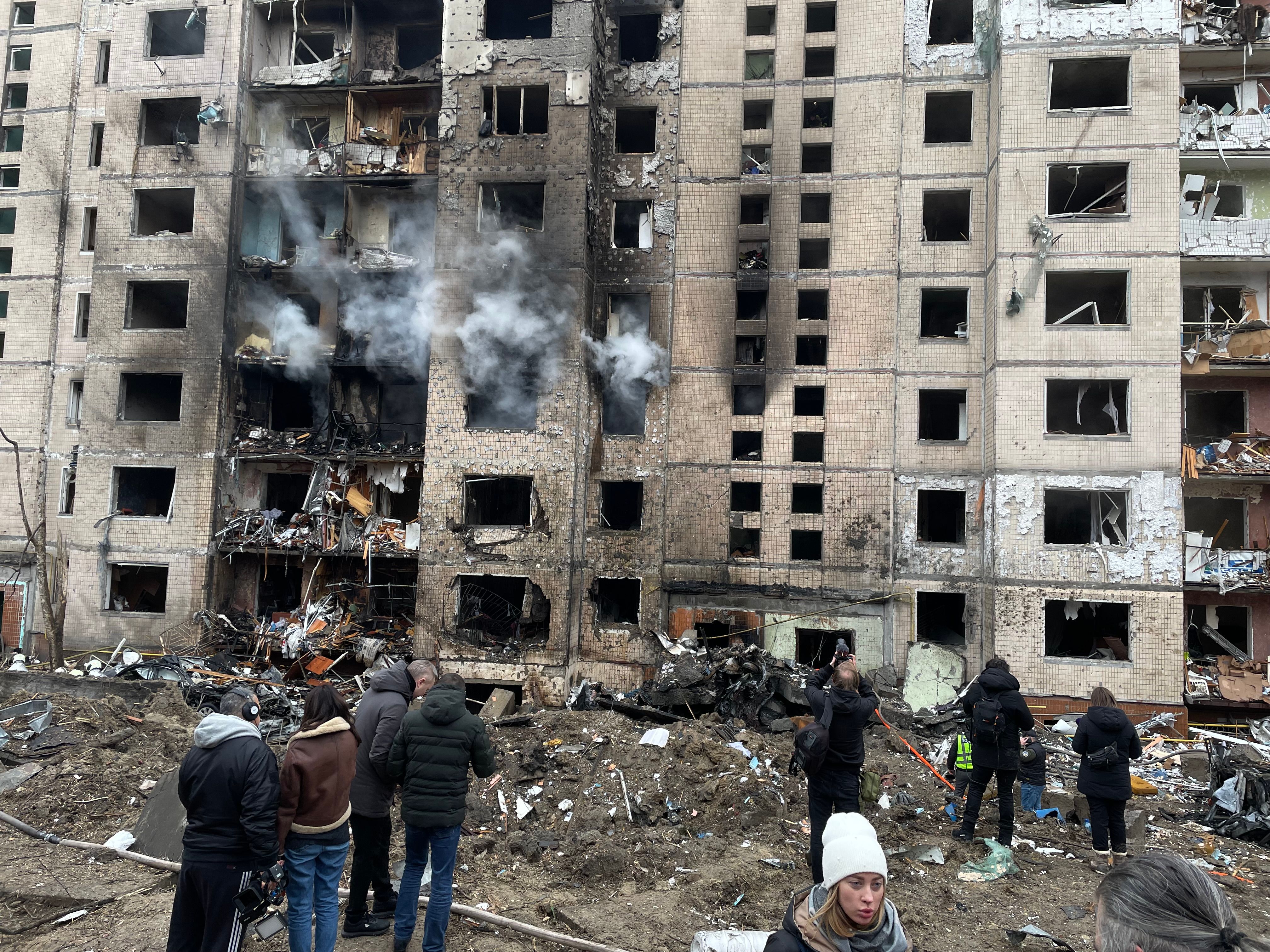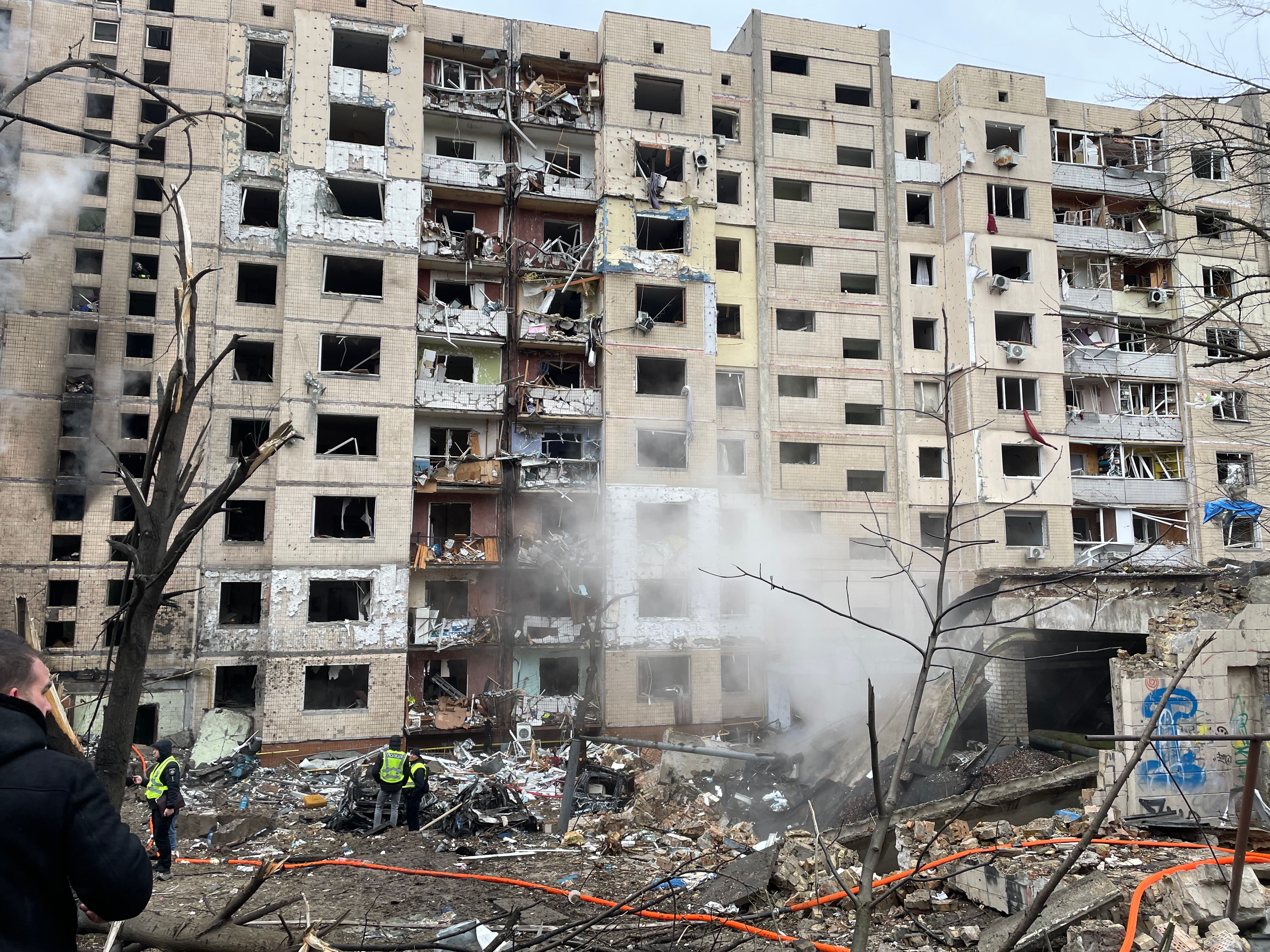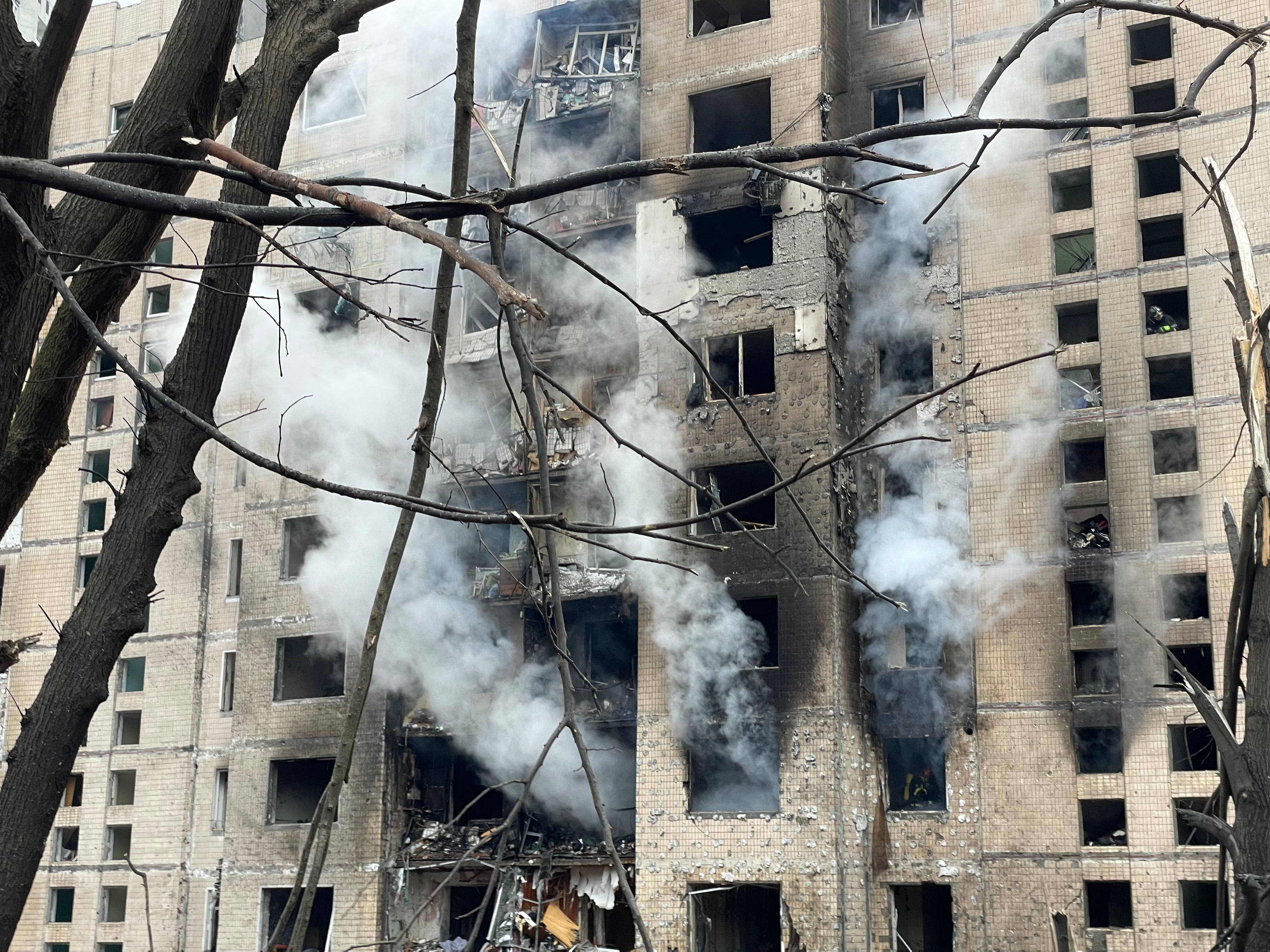 Який вигляд має будинок у Солом'янському районі Києва після обстрілу 2 січня