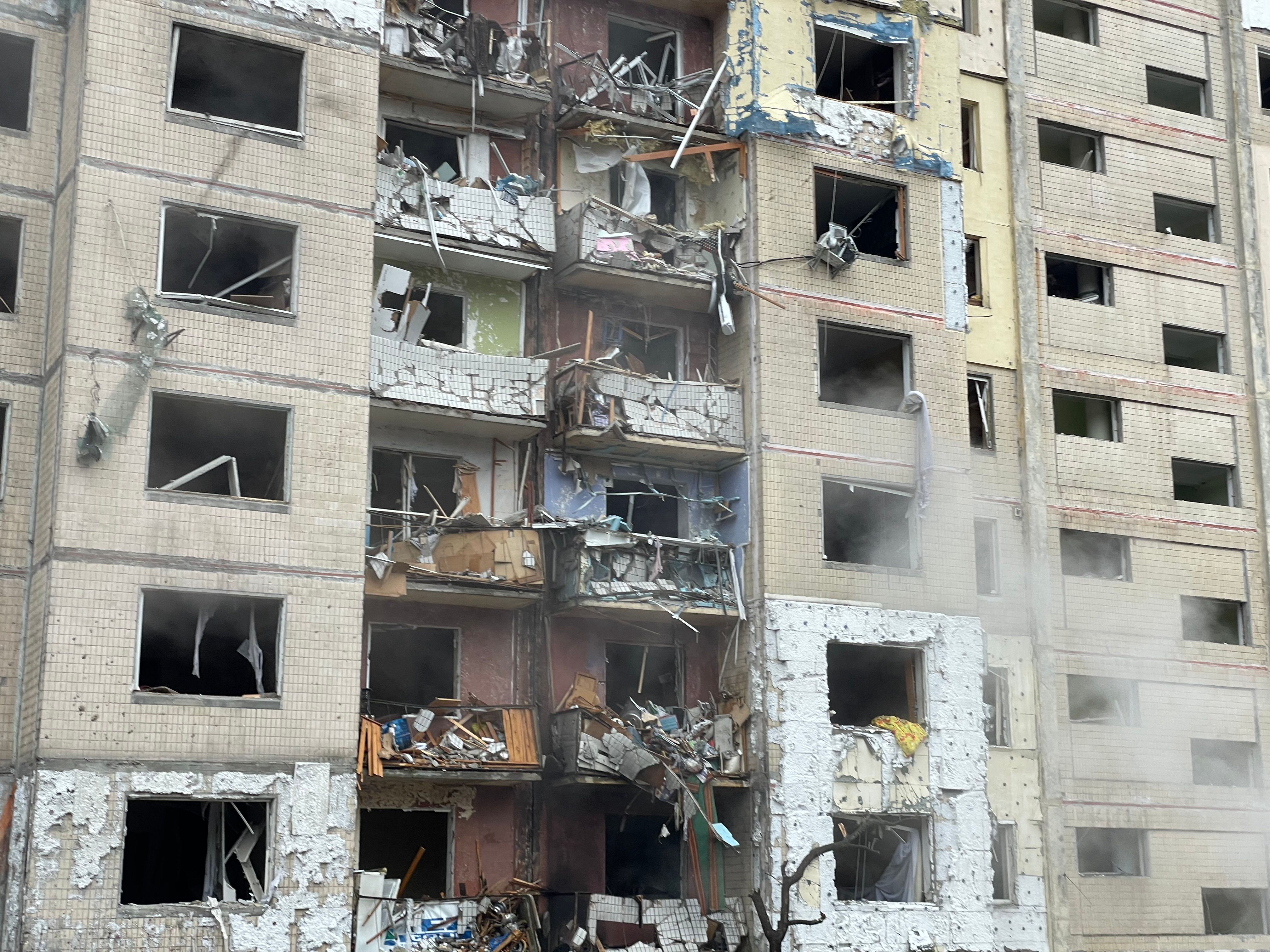 Будинок на Солом'янці, зруйнований ракетним обстрілом / Фото Валентини Поліщук для 24 Каналу