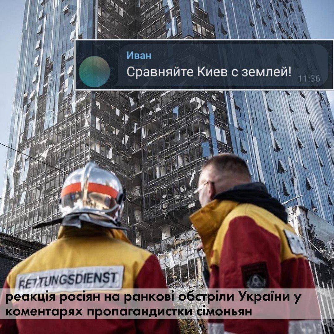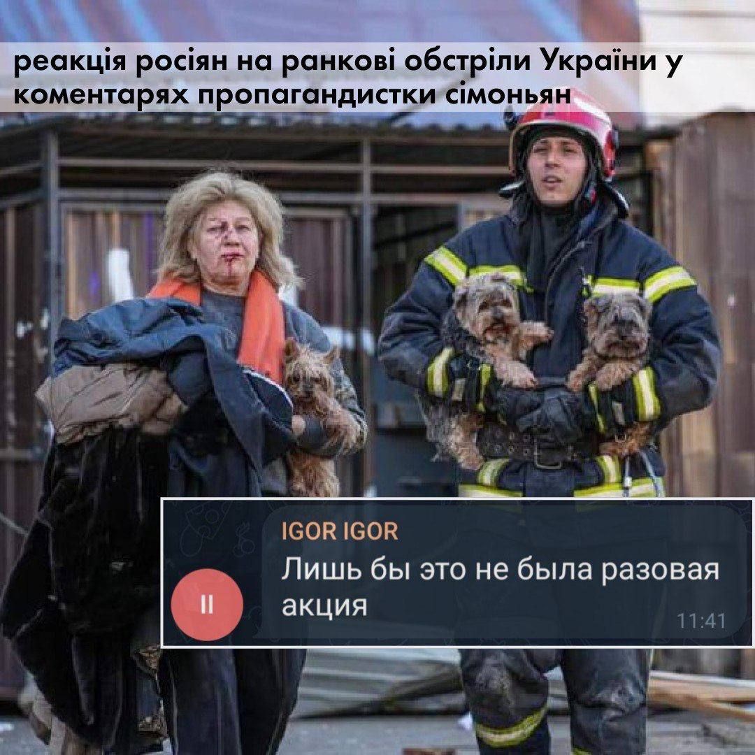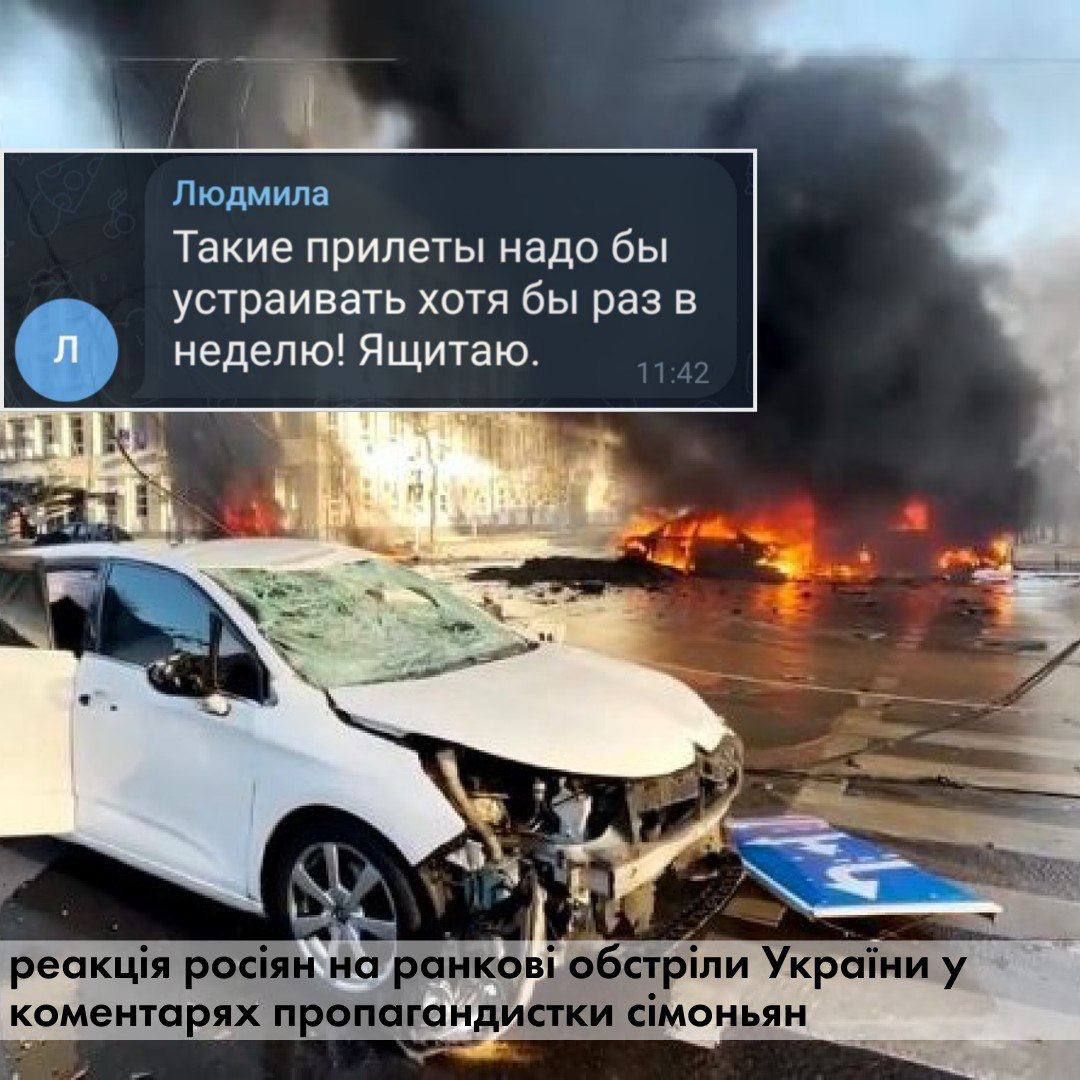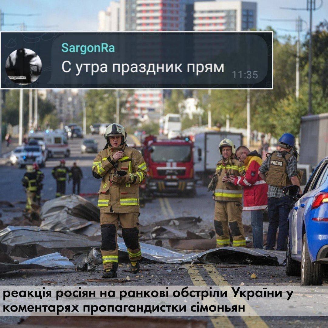У коментарях в пропагандистки Маргаріти Сімоньян, яка назвала удари нібито "відповіддю за Кримський міст" зібралося чимало любителів радіти вбивствам та руйнуванням. Хтось зізнався, що вірить не у Бога, а в Путіна, а хтось назвав масовану атаку святом.