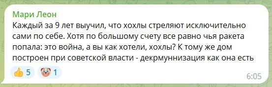 Також користувачі включили "режим аналітики" і стверджують, що Україна "сама себе бомбить вже 9 років", а знищення будинків ракетами громадяни країни-терористки вважають "декомунізацією", бо, мовляв, все збудовано в СРСР.