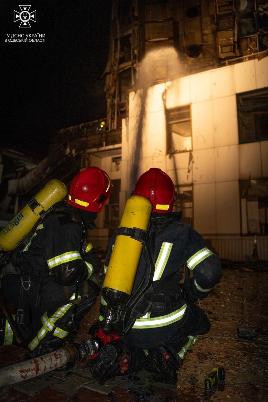 Окрім цього, внаслідок падіння уламків пошкоджень і займання зазнали складські будівлі одного з підприємств та приватний будинок у передмісті Одеси. Також займалася трава на відкритих територіях. Пожежі ліквідовано. Постраждалих не зафіксовано.