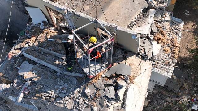 Головне управління ДСНС у Миколаївській області показало, як виглядає зруйнована багатоповерхівка з висоти пташиного польоту: