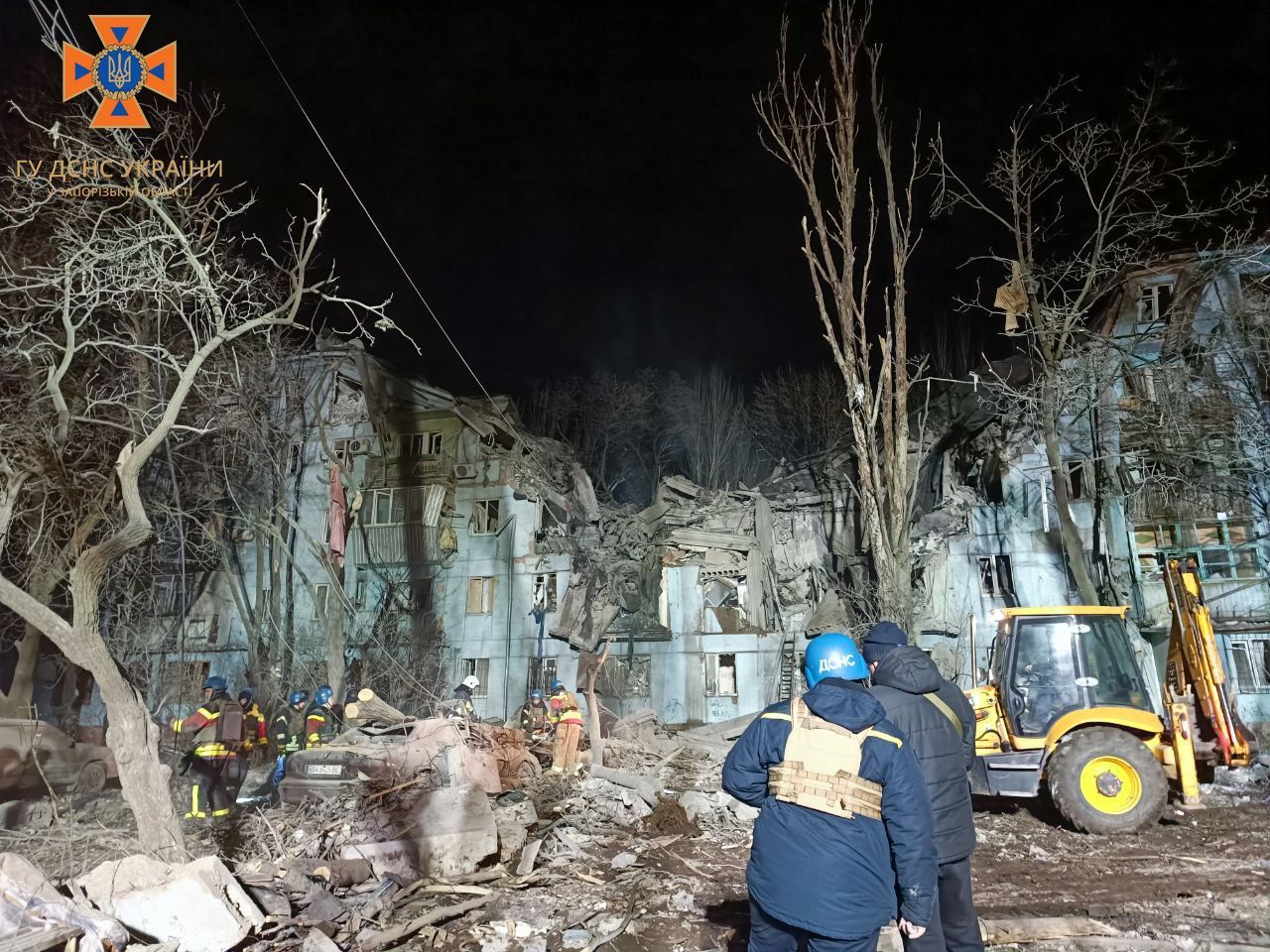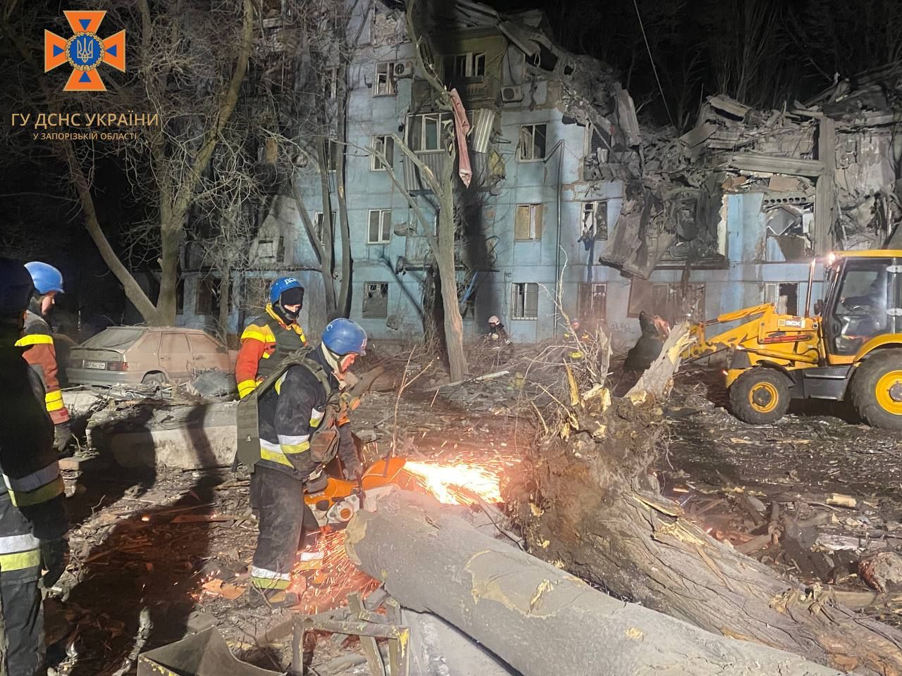 - Зранку 2 березня секретар Запорізької міської ради Анатолій Куртєв зазначив, що окупанти поцілили у 5-поверховий будинок, зруйнувавши його. Під завалами на той момент перебували люди.