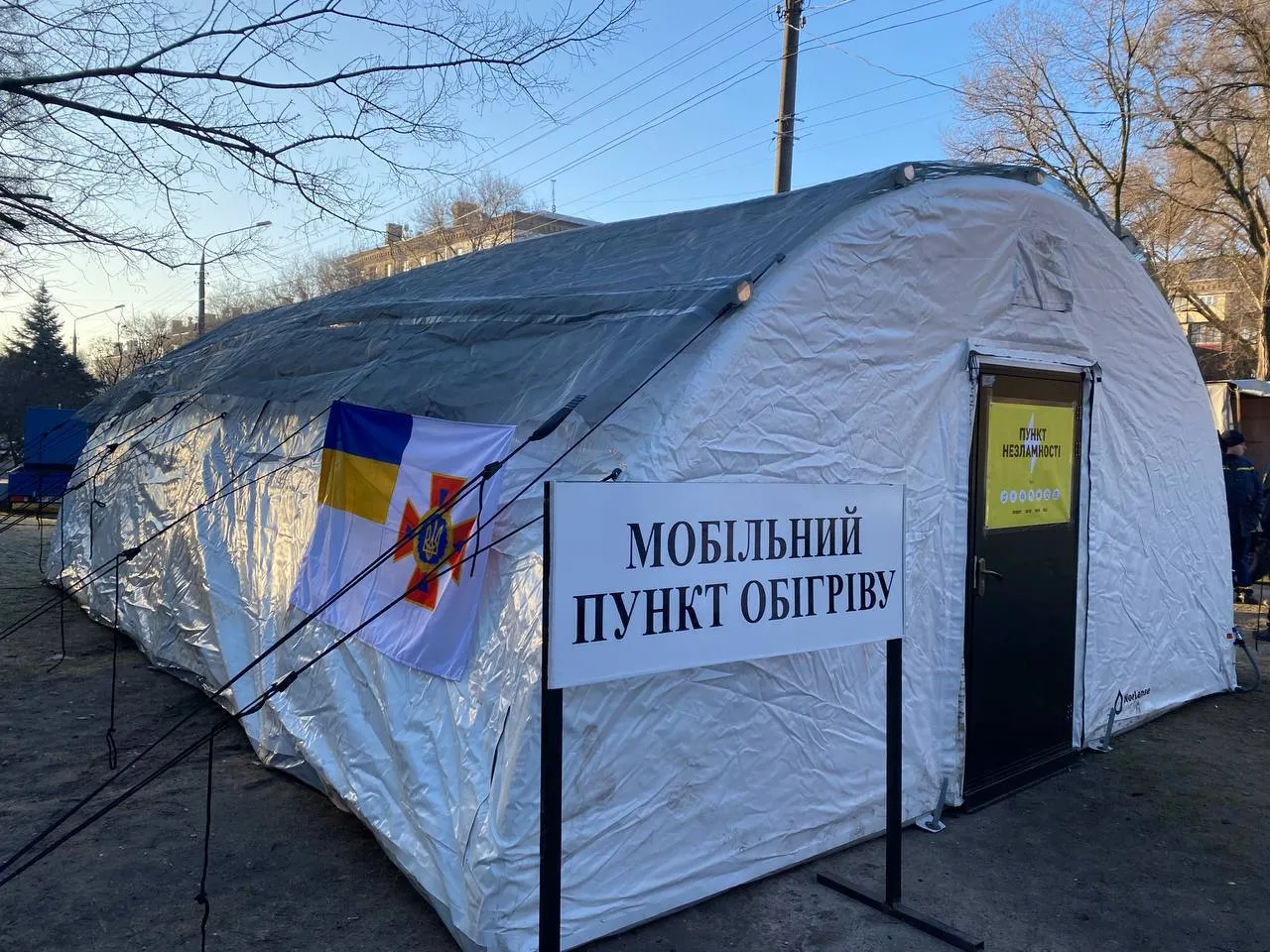Пункт обігріву на місці ракетного удару у Запоріжжі / фото ДСНС України