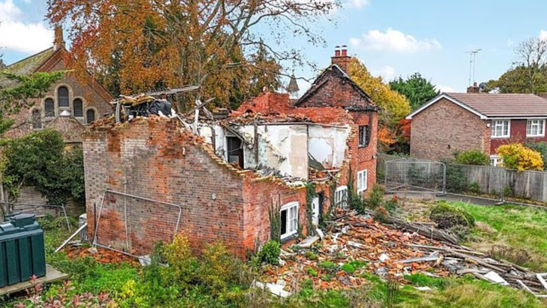 Колись це був повноцінний житловий котедж із чотирма спальнями, кухнею, їдальнею, вітальнею та подвійним гаражем. Зараз від будівлі залишилися лише зовнішні стіни та фрагменти конструкцій.