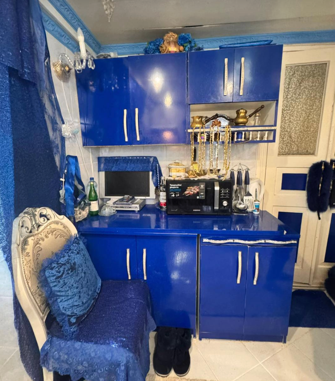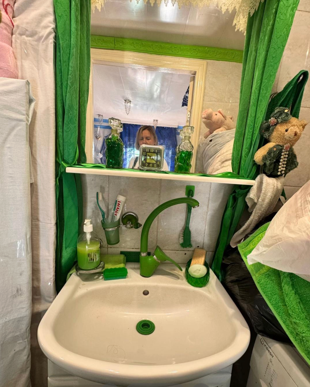 На фото та відео видно, що в будинку є кімнати із зеленим, червоним, рожевим та синім інтер'єрами. Меблів та декору там не бракує – усе "по-багатому". Сам будинок зовні пофарбований у зелений колір.