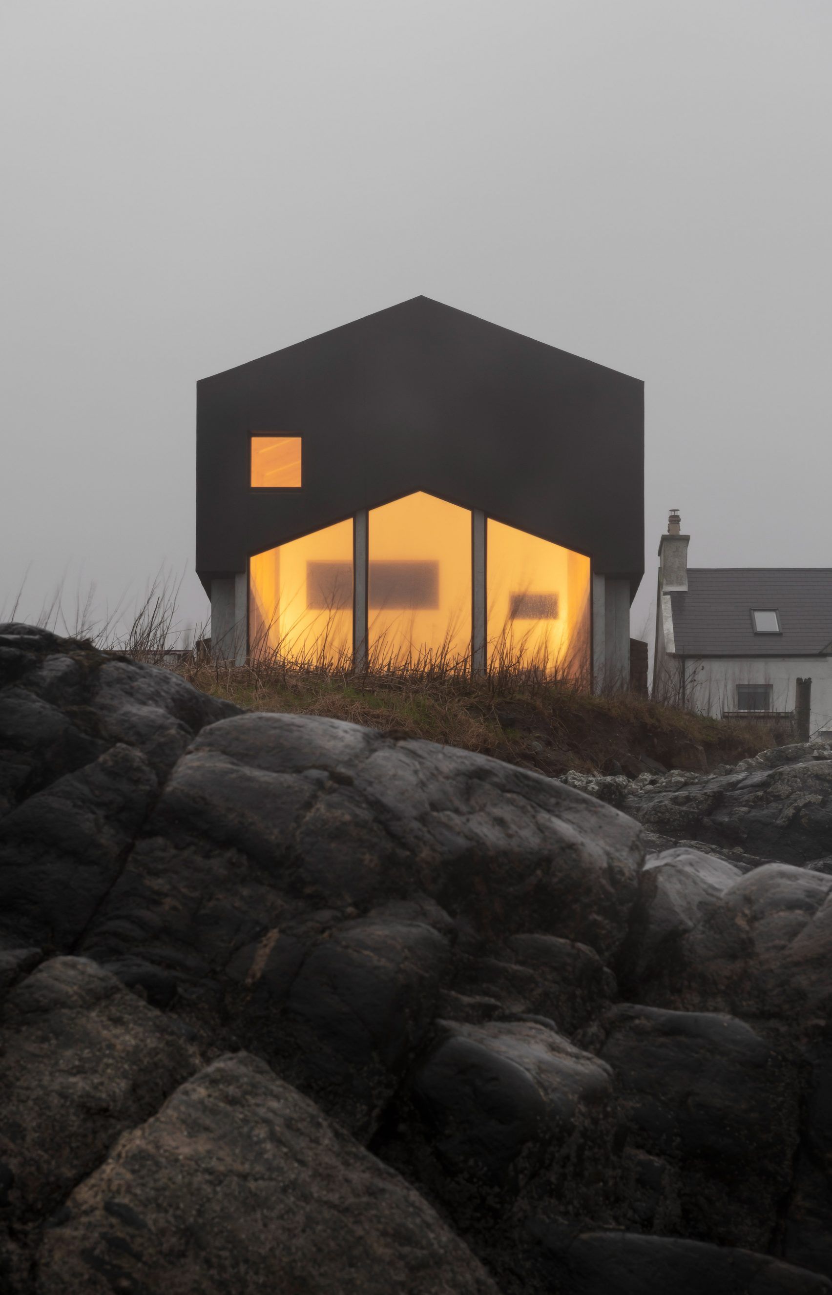 Будинок на шотландському острові Тірі побудований у межах старих кам'яних стін колишнього корівника. Його фасад зі скла у формі фронтону повторює силует традиційної фермерської архітектури, але в сучасному виконанні виглядає майже нереально.