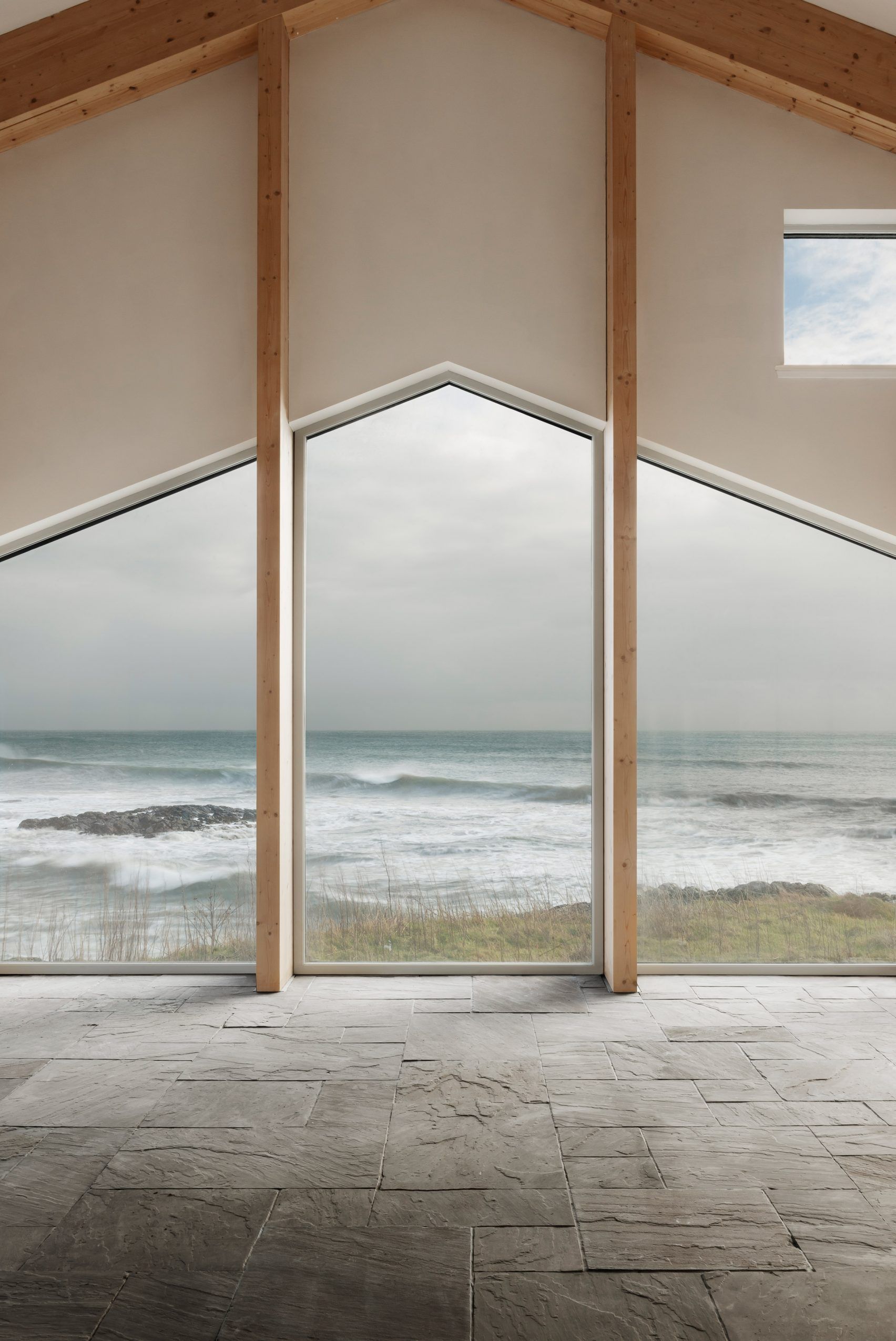Усередині простір залитий світлом і відкритий до навколишнього ландшафту, що робить його водночас притулком і спостережним пунктом.