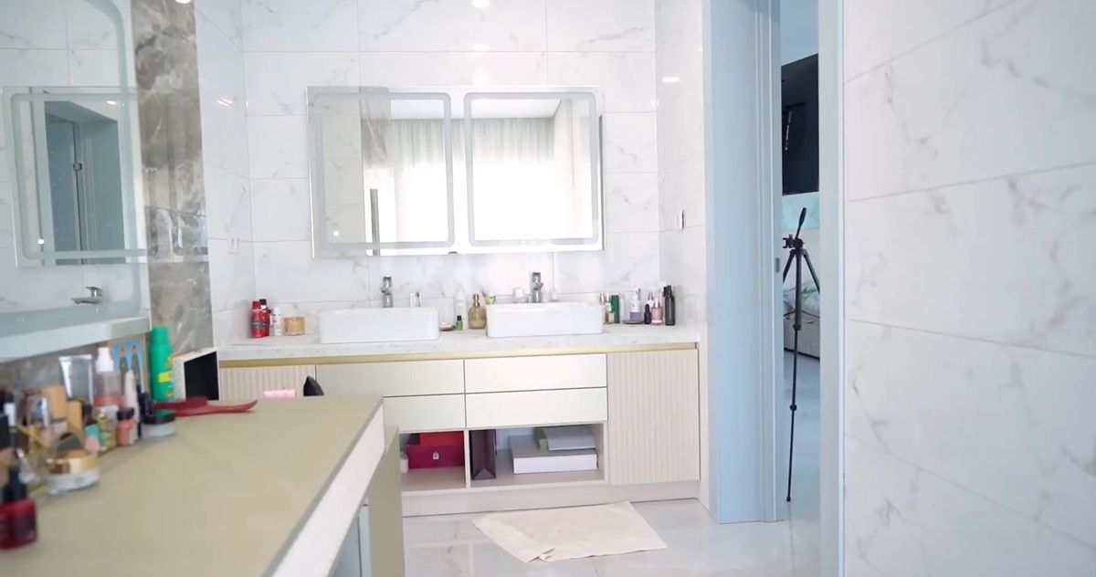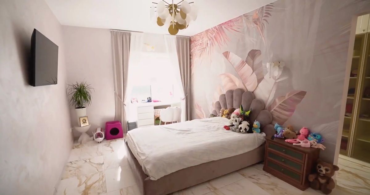 У будинку продумано простір для кожного члена родини: окремі кімнати мають син Домінік і донька Валерія (у неї навіть є власна гардеробна). Також там є гостьова спальня, кімната для домашніх улюбленців і власне укриття.
