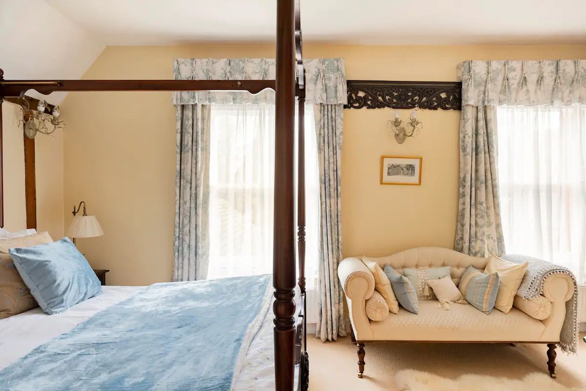 Дві спальні з балдахіном, обидві з окремими ванними кімнатами, телевізором, доступом до інтернету, окремою гостьовою вітальнею з каміном і садом у внутрішньому дворику,