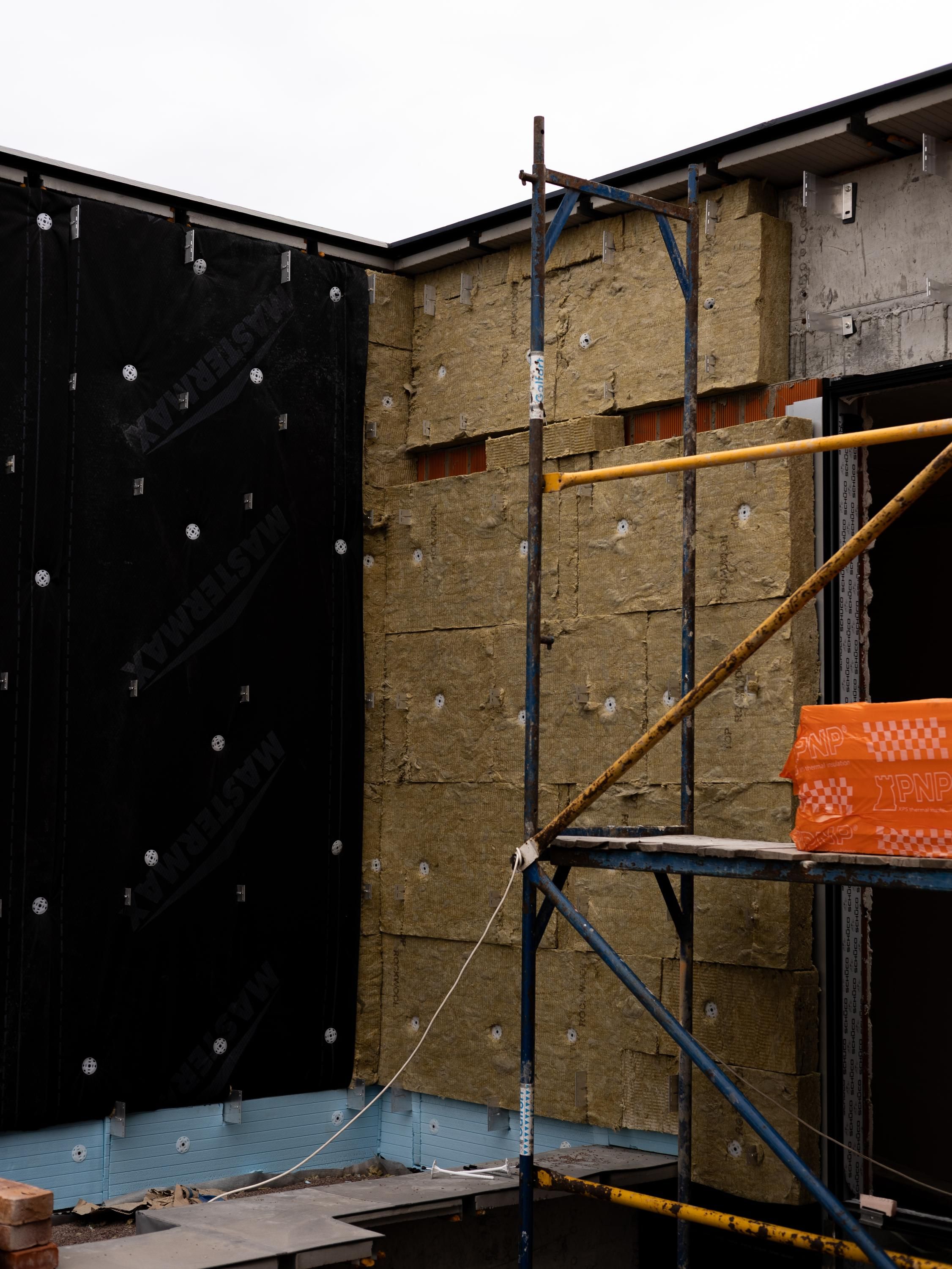 - Для віконних систем використовують металопластикові або алюмінієві профілі, а для утеплення фасадів – мінеральну вату або пінопласт.