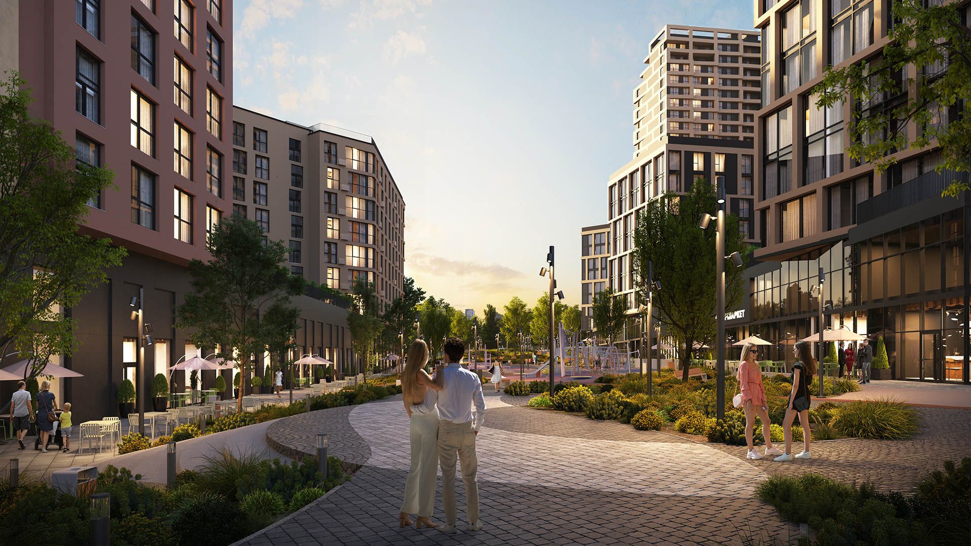 Крім того, акцент роблять на концепцію 15-хвилинної доступності, де буквально всі розваги та інфраструктура поряд, а дістатися до необхідних об’єктів можна пішки.