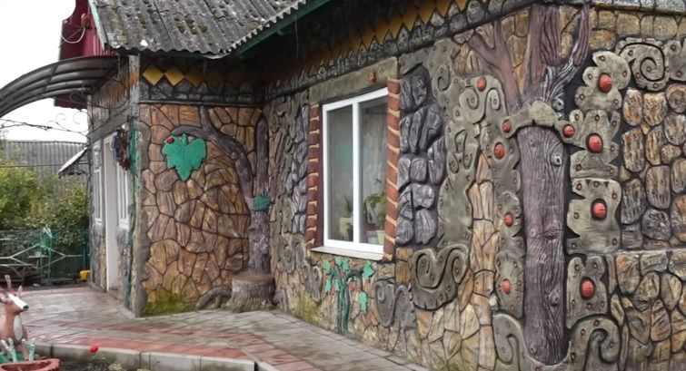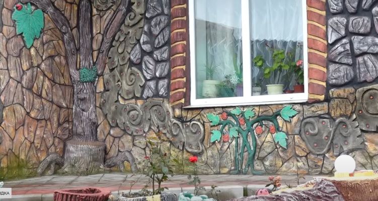 Жінка розповідає, що раніше не тримала пензля в руках і не виявляла мистецького таланту. Вперше вона спробувала задекорувати стіну гаража, бо та постійно зацвітала від вологи. Тому Надія Куца вирішила викласти її камінням.