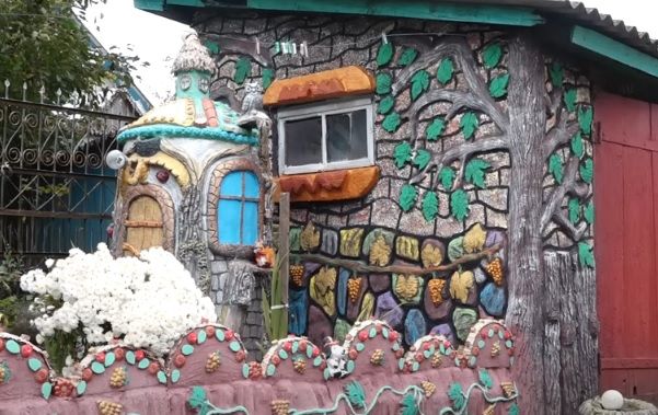 Зараз будинок та подвір'я жительки Тернопільщини прикрашають безліч композиції. У них переважають рослинні мотиви, виноградні лози, а також химерні дерева.