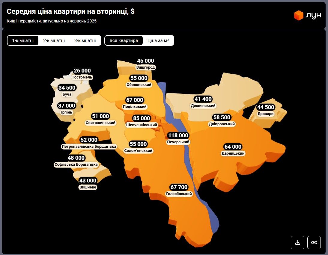 Ціни на однокімнатні квартири у містах біля Києва / Інфографіка ЛУН