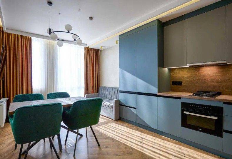 Індивідуальне опалення забезпечує газовий котел, що дозволяє контролювати температуру та витрати. Санвузол суміжний, оформлений у сучасному стилі. Серед особливостей квартири – сучасний дизайн інтер'єру, панорамні вікна з краєвидом на місто, оздоблення штучним каменем і повна готовність до заселення.