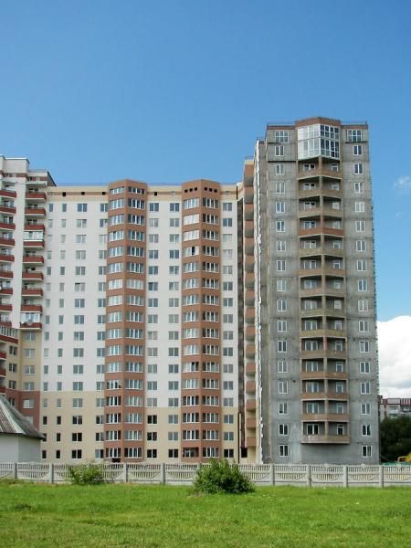 Дві шістнадцятиповерхові будівлі на проспекті Чорновола сягають приблизно 60 метрів. Зведені у 1980-х роках, вони стали типовим прикладом великопанельної житлової забудови того часу. Завдяки розташуванню біля транспортного коридору будинки визначають силует північного напрямку міста.
