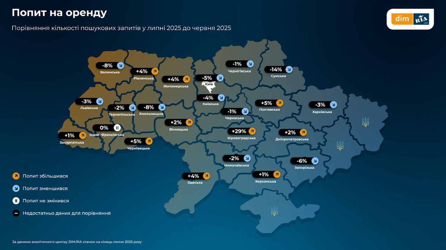 Водночас найвідчутніше впав попит на оренду житла в областях: