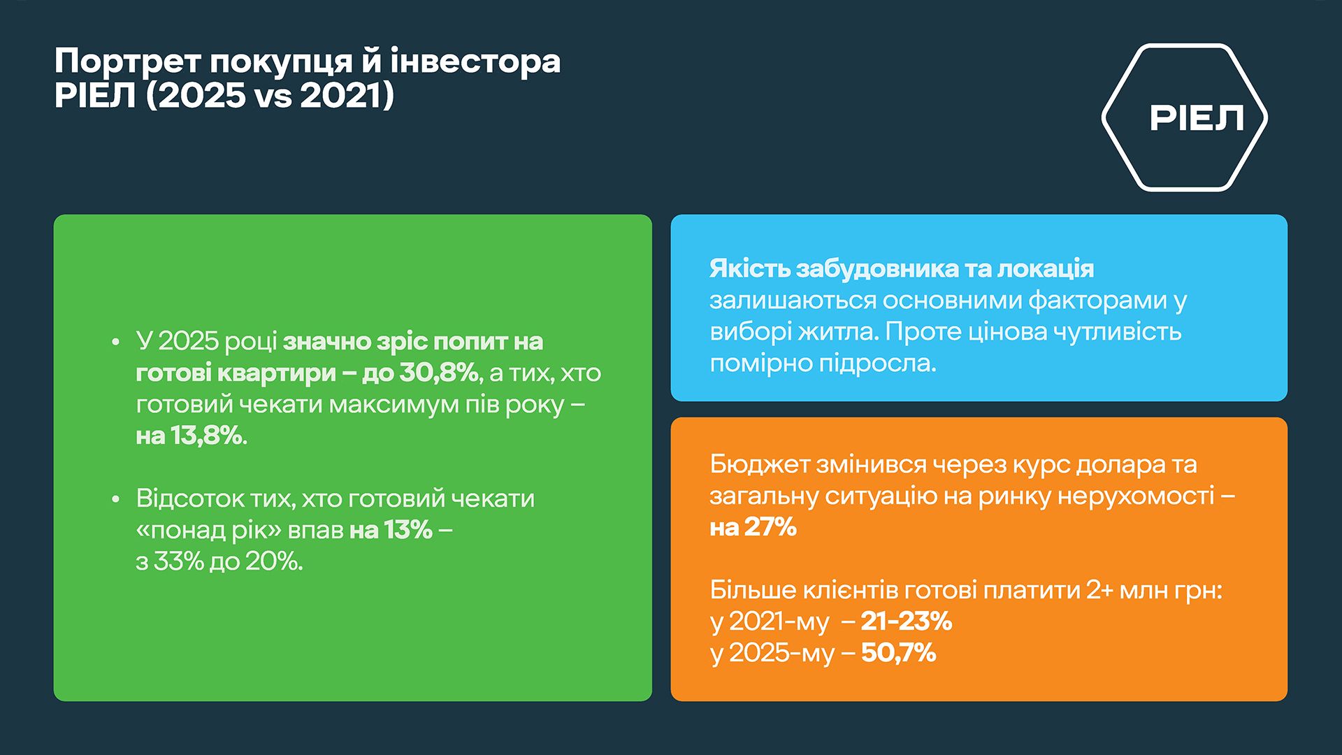 СЕО РИЕЛ Ростислав Мельник очертил ключевые тенденции рынка, связанные с ростом себестоимости и цен на жилье, трансформацию портрета инвестора и перспективы дальнейшего развития отрасли. Об этом информирует 24 Канал.