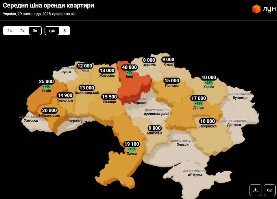 Цены аренду трехкомнатных квартир в Украине / Инфографика ЛУН