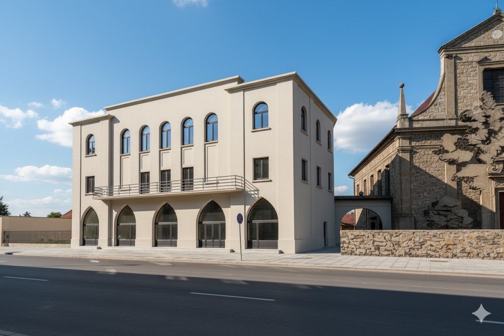Центральная башня должна была завершаться большой звездой Давида, а визуально здание повторяло стиль главной синагоги Берлина. Однако смета оказалась непосильной для общины, поэтому идею сократили до более скромной версии – синагоги Темпль.