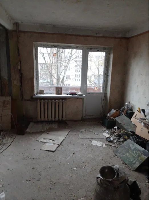 Владелец прикрепил к объявлению несколько фото. На них заметно, что помещение находится в аварийном состоянии. В нем нет мебели, а условия для проживания – минимальные. Туалет и забитая хламом ванная стоят прямо посреди комнаты. Однако жилье имеет балкон и новые окна, которые уже установлены.