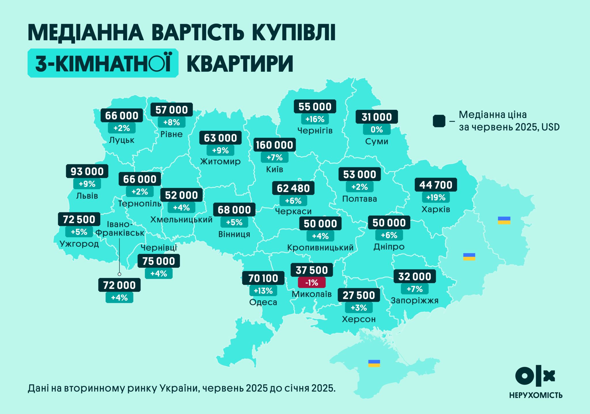 Цены на трехкомнатное жилье по Украине / Инфографика OLX