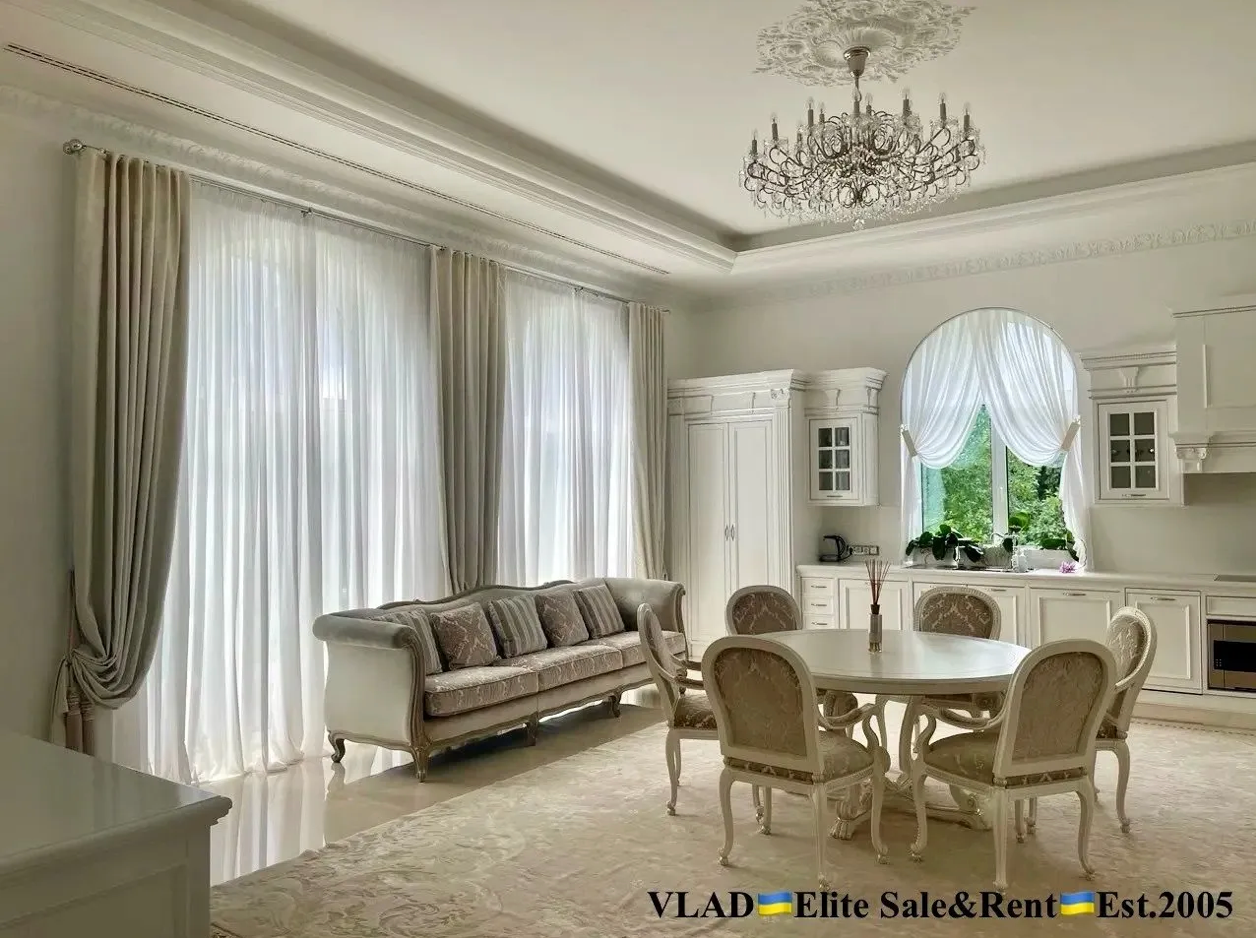 В объявлении указано о дизайнерском ремонте. Имение полностью укомплектовано: дорогостоящая мебель, сантехника и прочее.