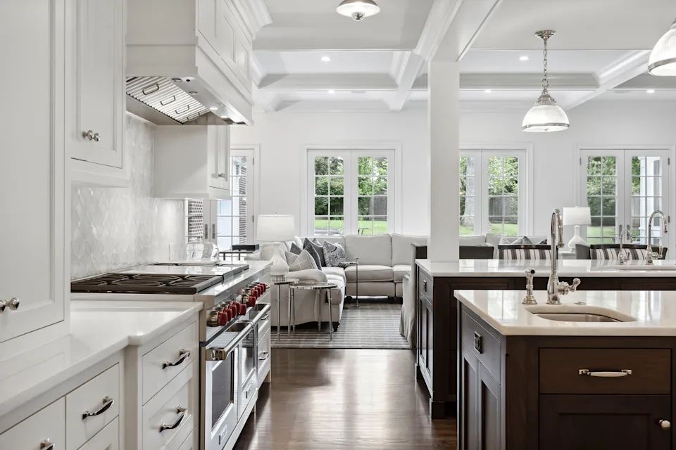 Просторная солнечная гостиная с трехметровыми кессонными потолками открывает вид на задний двор. А жуткий подвал из фильма "Один дома", который пугал Кевина, превратился в полноценную зону отдыха с баром и домашним кинотеатром.