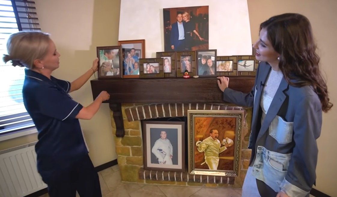 Сам дом с годами претерпел изменения – семья достроила новые помещения. У гостиной можно увидеть многочисленные спортивные награды мужа Оксаны – Вадима Гутцайта, олимпийского чемпиона 1992 года в командном зачете по фехтованию, президента НОК Украины, экс-министра молодежи и спорта. На полках – кубки, медали, фото с Олимпиад. Стены украшают семейные фотографии, портреты детей и снимки с близкими.