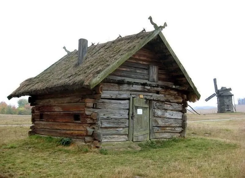 На тыльной стене интерьера нашли дату – 1587 год, что свидетельствует о сооружении дома еще во времена Речи Посполитой. Когда ее обнаружили ученые, она уже использовалась как хозяйственное помещение. Сначала крыша была деревянной, впоследствии ее заменили соломенной. При установке дома в музее частично восстановили двери и окна.