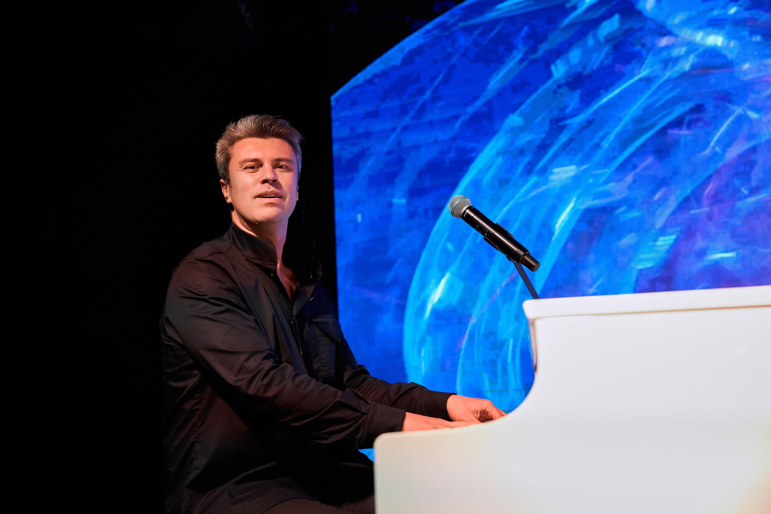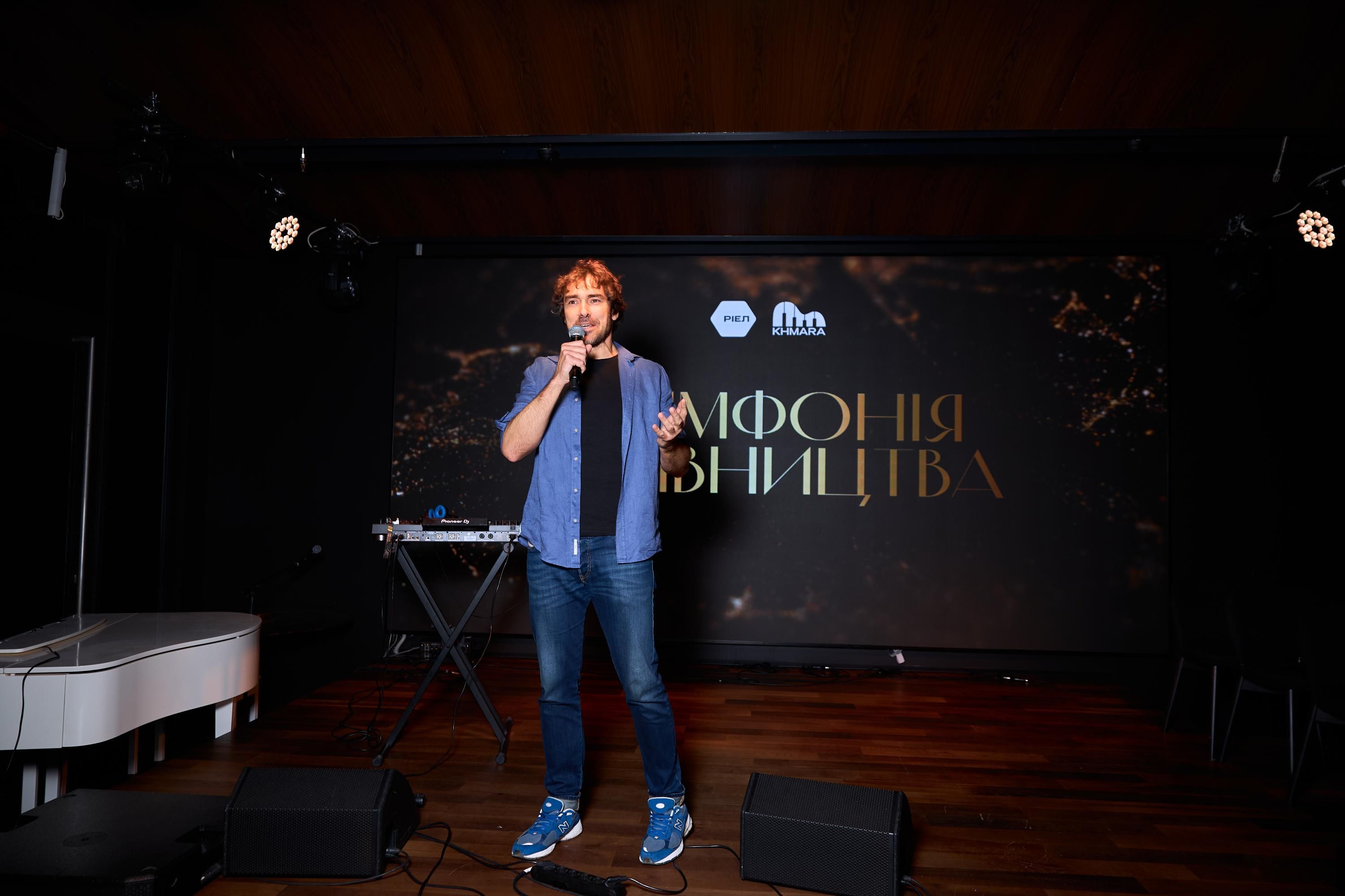 Во время презентации Евгений Хмара исполнил композицию вживую, а визуальное сопровождение объединило кадры реальных строительных процессов РИЕЛ с художественными символами – светом, движением и пространством.