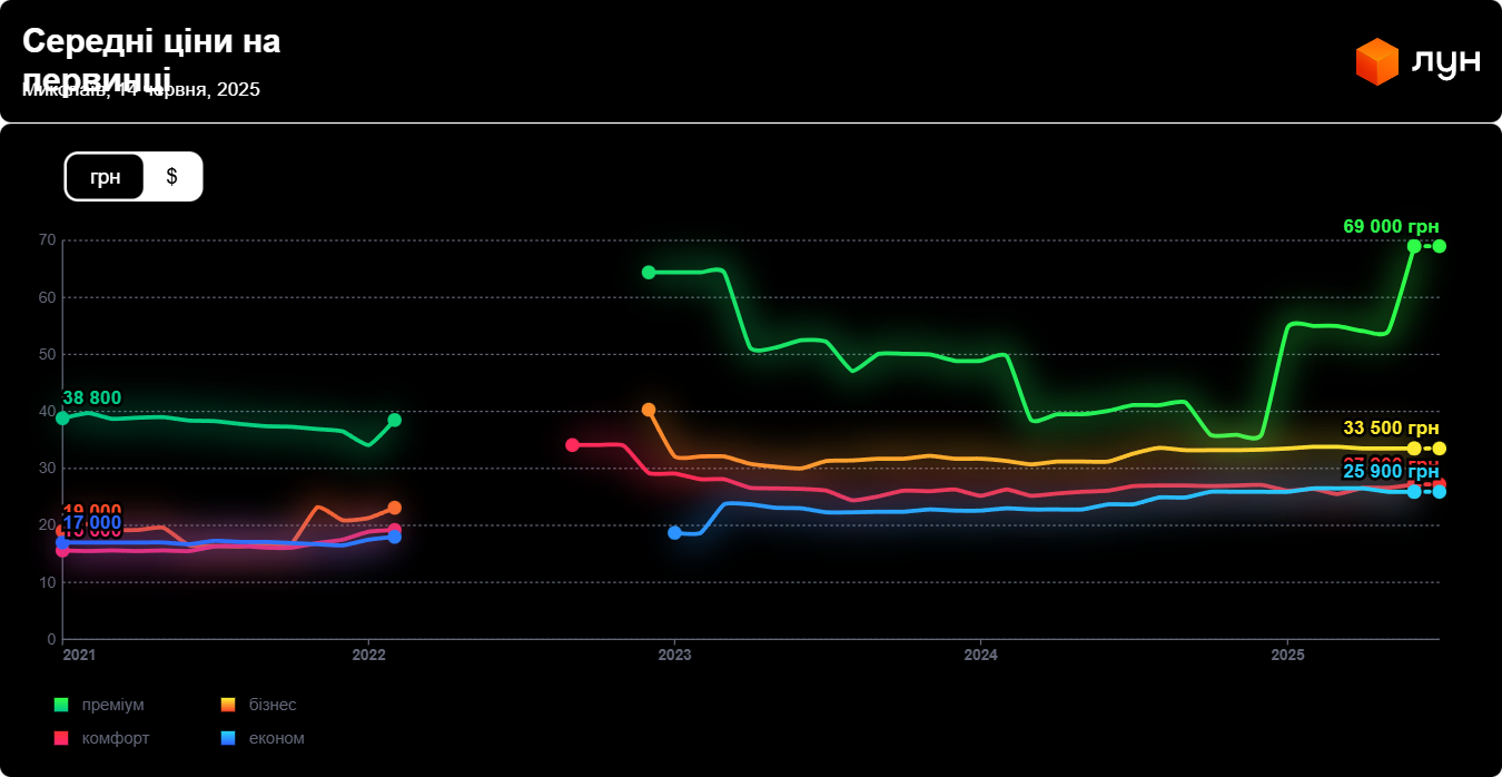 Премиум – 46 000 гривен, бизнес – 43 900 гривен.