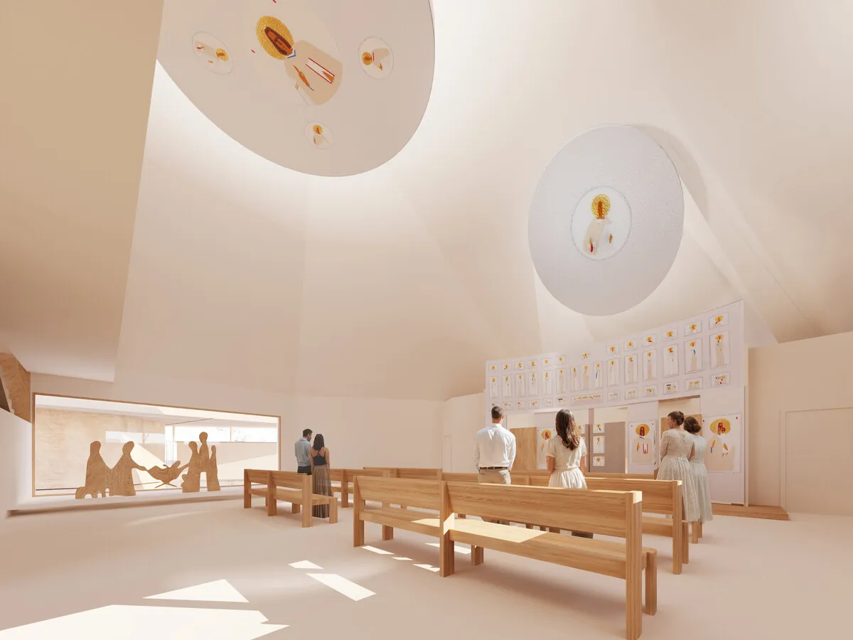 Храм спроектирован в соответствии с церковными канонами: алтарь будет расположен на востоке, главный вход – с запада, а вокруг сооружения можно будет пройти процессией. Внутри предусмотрено место для вертепа, что будет освещаться естественным светом.