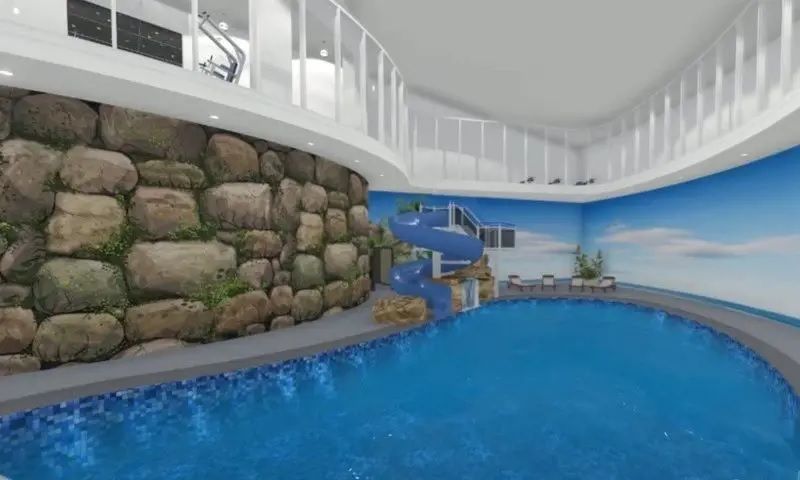 В бункере есть продуктовый магазин, бассейн, библиотека, кинотеатр, центр первой медицинской помощи, тренажерный зал, сауна, тюрьма, огороды, аквапонический комплекс, скалодром, бар и даже трехлетний запас пищи. Кроме того, там размещены 12 квартир, которые могут вместить 75 человек. А еще небольшие помещения для неуказанного количества персонала.
