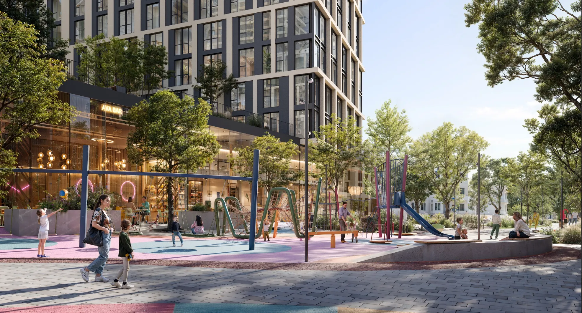 Комплекс дает возможность взрослым найти баланс между работой и отдыхом. Ведь на территории предусмотрены co-working пространства для тех, кто работает дистанционно. Также там будут фитнес-зал и спортклуб, чтобы люди с активным образом жизни могли тренироваться, не уезжая через весь город.