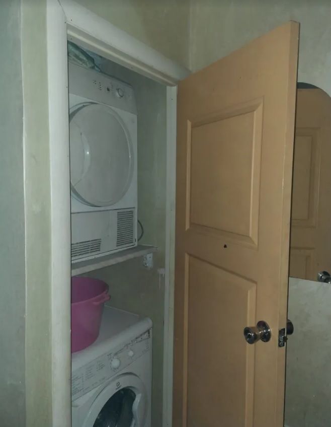 В квартире есть две спальни, кухня и туалет. Особенностью квартиры является то, что в каждой из спален есть душевая кабина. Из техники жилье укомплектовано стиральной машиной, холодильником, газовой плитой и кондиционером.
