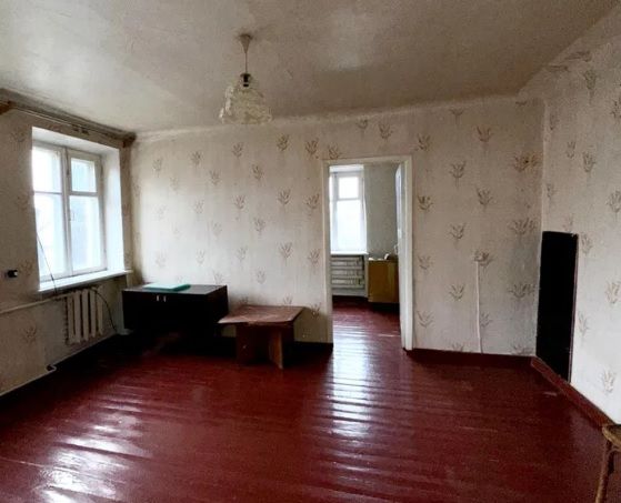 В квартире нет мебели. С фото заметно, что там старый ремонт. В частности, устаревшие обои, изношенный пол. Окна также старые, поэтому нуждаются в замене или реставрации.