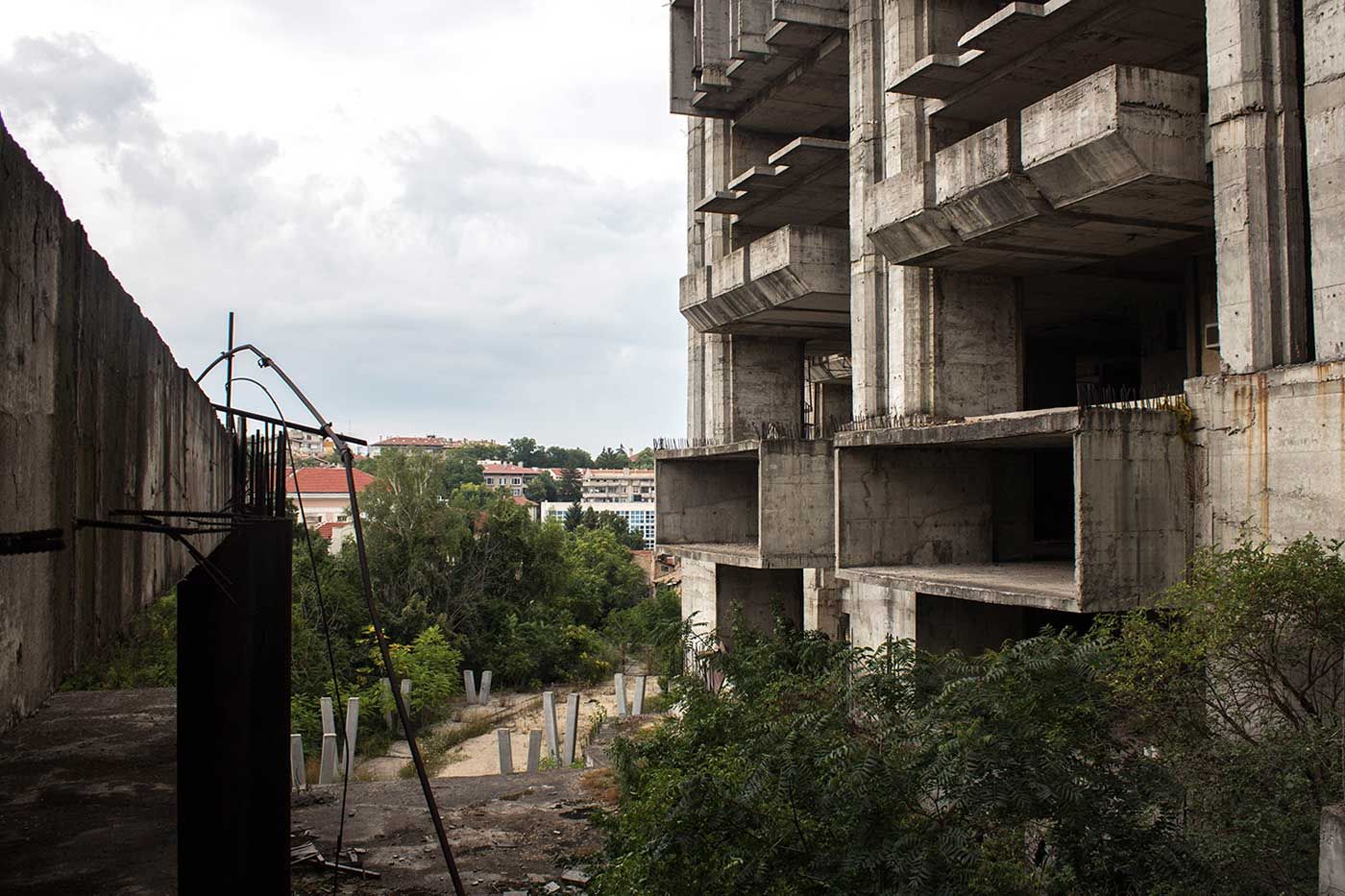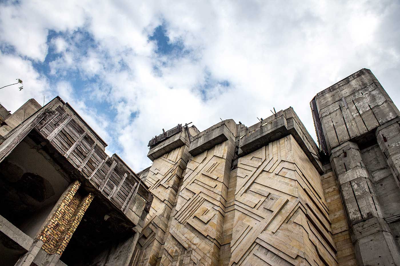 Строительство длилось 12 лет, и за это время архитекторы успели многое. Самым заметным сооружением осталась 18-этажная бетонная башня, где должна была бы быть почта. Рядом расположены недостроенные конструкции, которые на самом деле составляют с башней один комплекс.