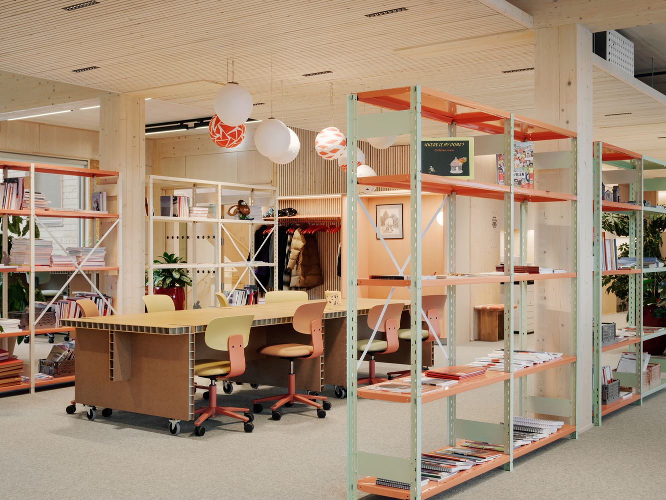 Вентиляционные агрегаты, акустические потолочные плиты, сантехника и пол – все это можно при необходимости перенести в другие части здания. 60% мебели изготовили из переработанных материалов, а 40% – с биоразлагаемых или промышленных отходов, в частности пластика, который извлекли из океана.