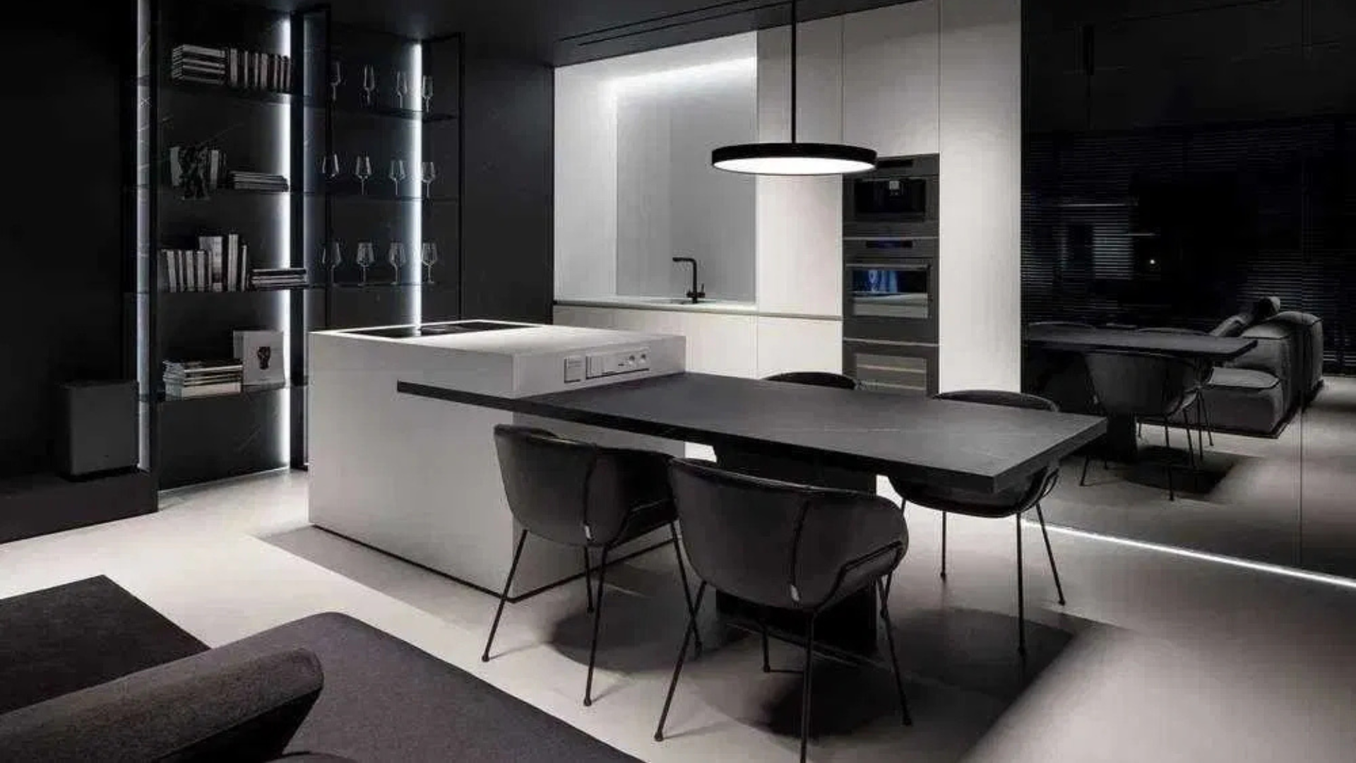 Кухня-гостиная площадью более 30 квадратных метров оборудована техникой премиум-класса – варочная панель, посудомоечная и сушильная машины, а также встроенный холодильник, который гармонично вписывается в дизайн. В зоне отдыха размещена удобная мебель и медиасистема высокого качества.