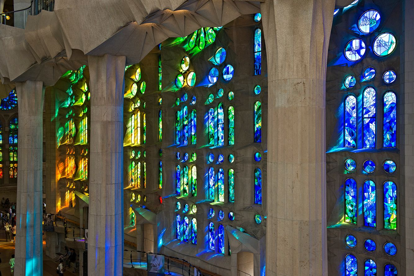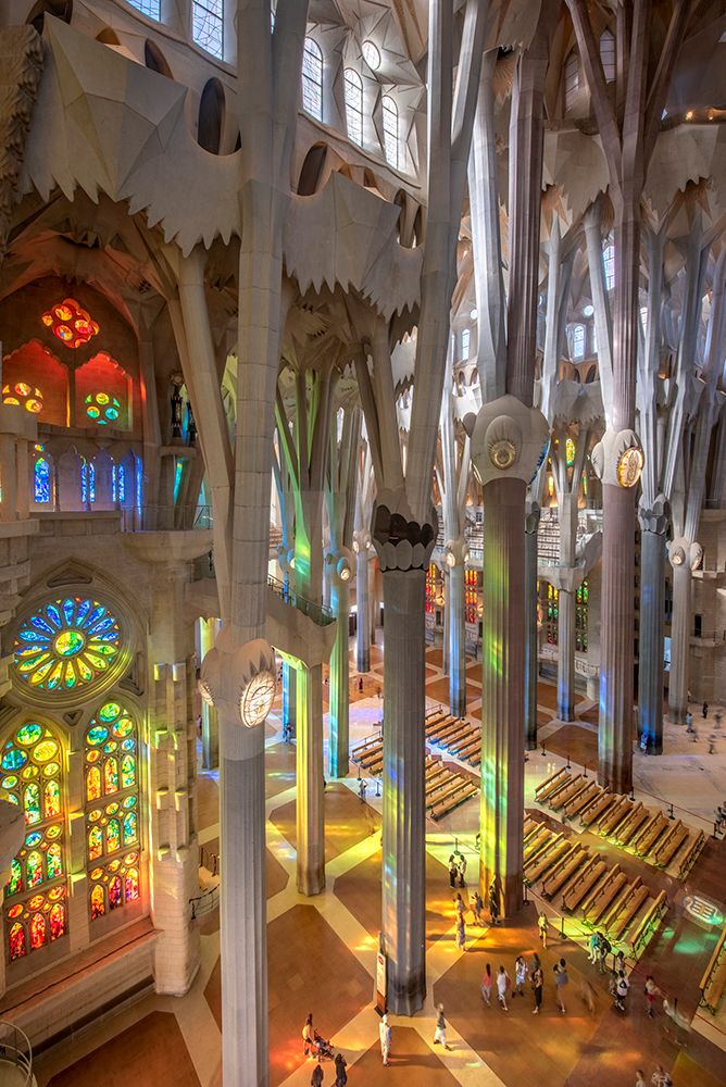 Архитектура храма сочетает готику и модерн, имеет элементы, вдохновленные природой: колонны похожи на деревья, а витражи создают невероятную игру света внутри.