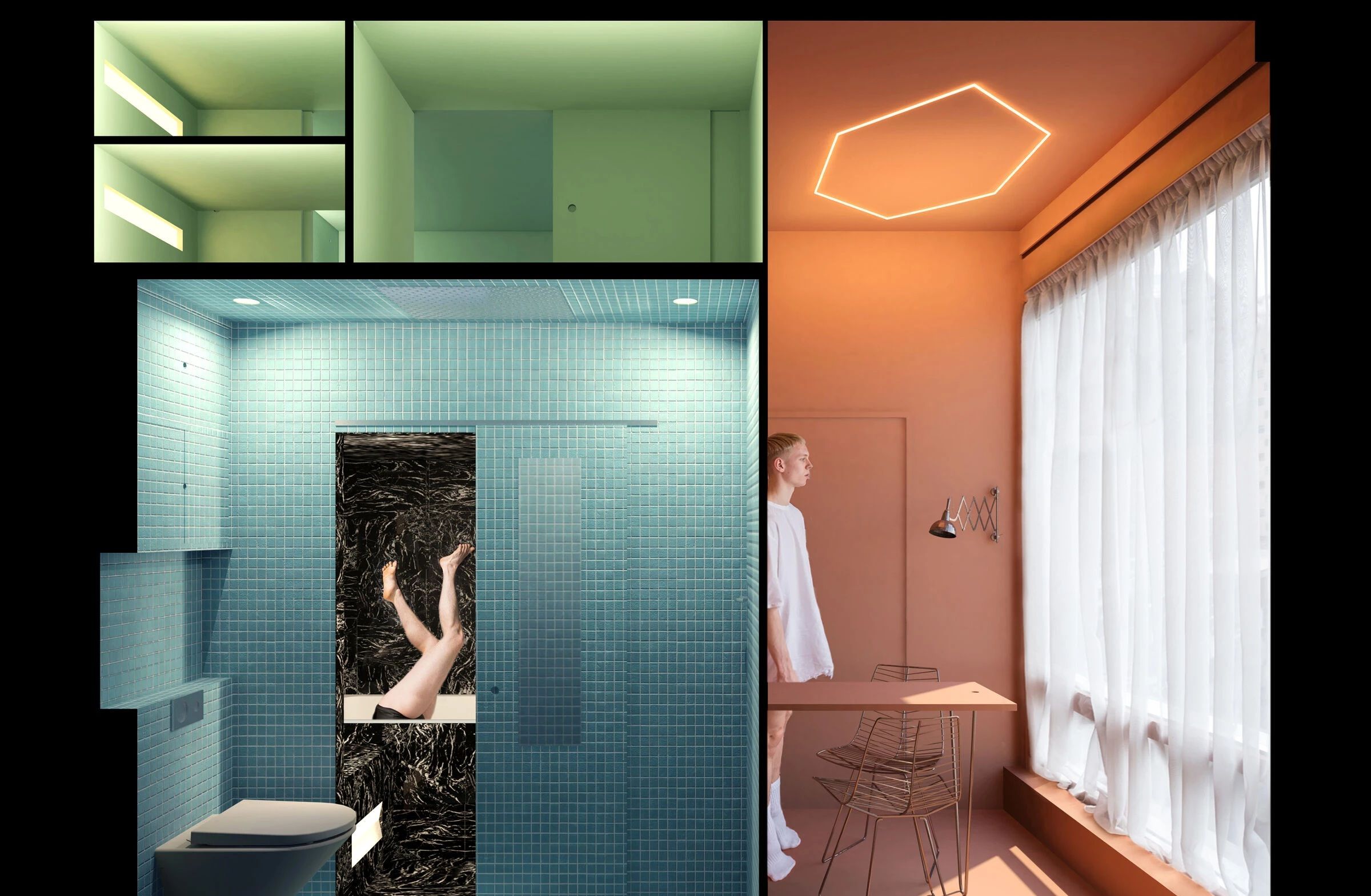 Это переоборудование стало "храмом пропорций" для пары, которая и заказала проект. Они стремились к максимально компактному, но одновременно роскошному жилью – без большой кухни, зато с возможностью наслаждаться спа-процедурами в собственном мини-пространстве.