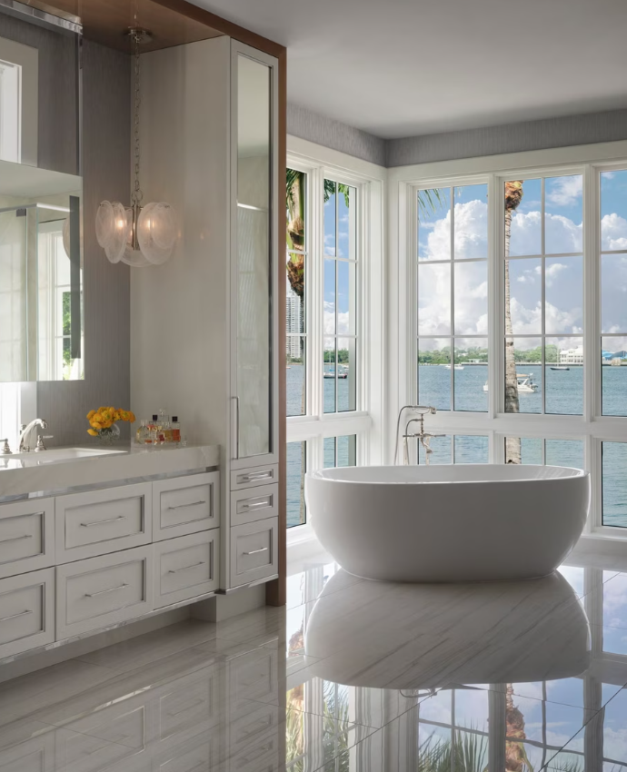 Изюминка поместья – собственный пляж, единственный в Палм-Бич. У бассейна обустроена зона для отдыха с друзьями или тихих вечеров с бокалом вина. Все комнаты плавно перетекают друг в друга, создавая атмосферу открытости, света и спокойствия.