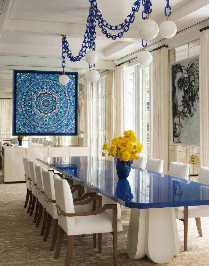 Дом просторный, светлый, с окнами от пола до потолка и видом на Атлантический океан. Но главное – он создан для жизни, а не для хвастовства. Супруги имеют трех дочерей, трех собак и кота, поэтому интерьер сделан максимально удобным и прочным, чтобы не волноваться из-за разлитого кофе или царапин на мебели.