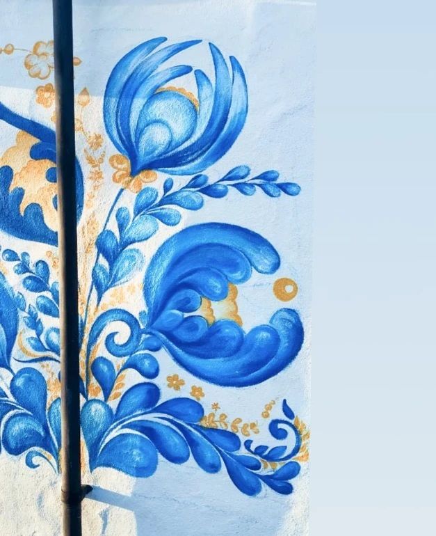 Этот стиль живописи из региона, где я родилась, из Днепропетровской области. Поскольку у нас было много синей краски, мы добавили желтой и получили цветовую гамму украинского флага,