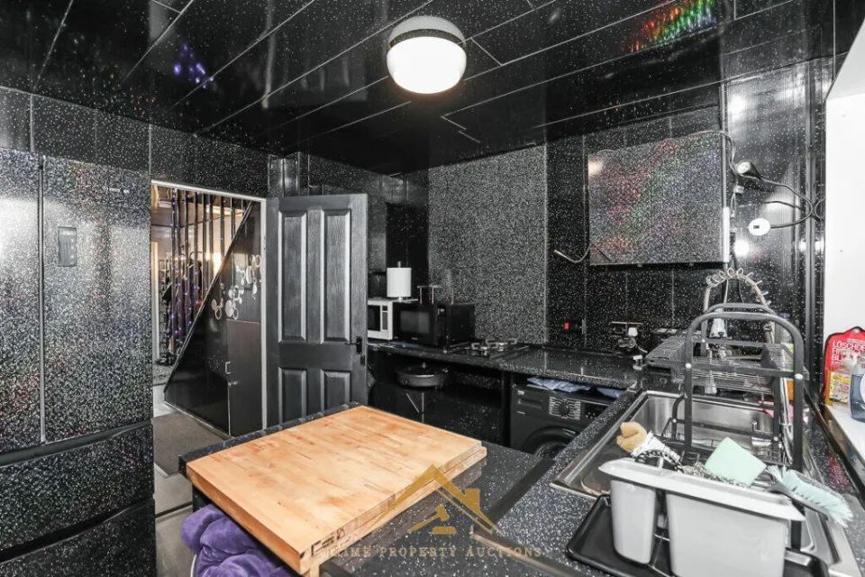 Внешние стены здания черные, такого же цвета входные двери и ограждение. Более того, черный там даже сарай. Внутри жилье также очень темное. Лестница, пол, а также большинство потолков и стен – черные. Такие же холодильник, стиральная машина и микроволновая печь на кухне. Черной является и ванная комната.