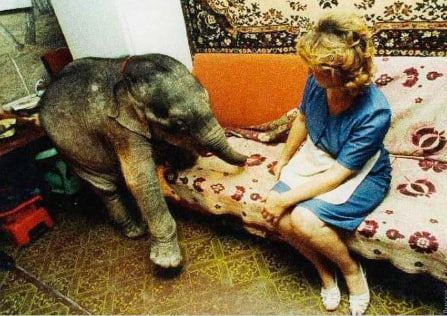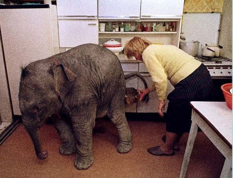 Обратите внимание! На постоянной основе слоненок не жил в квартире. Когда животное стало взрослым его перевезли в Австрию.