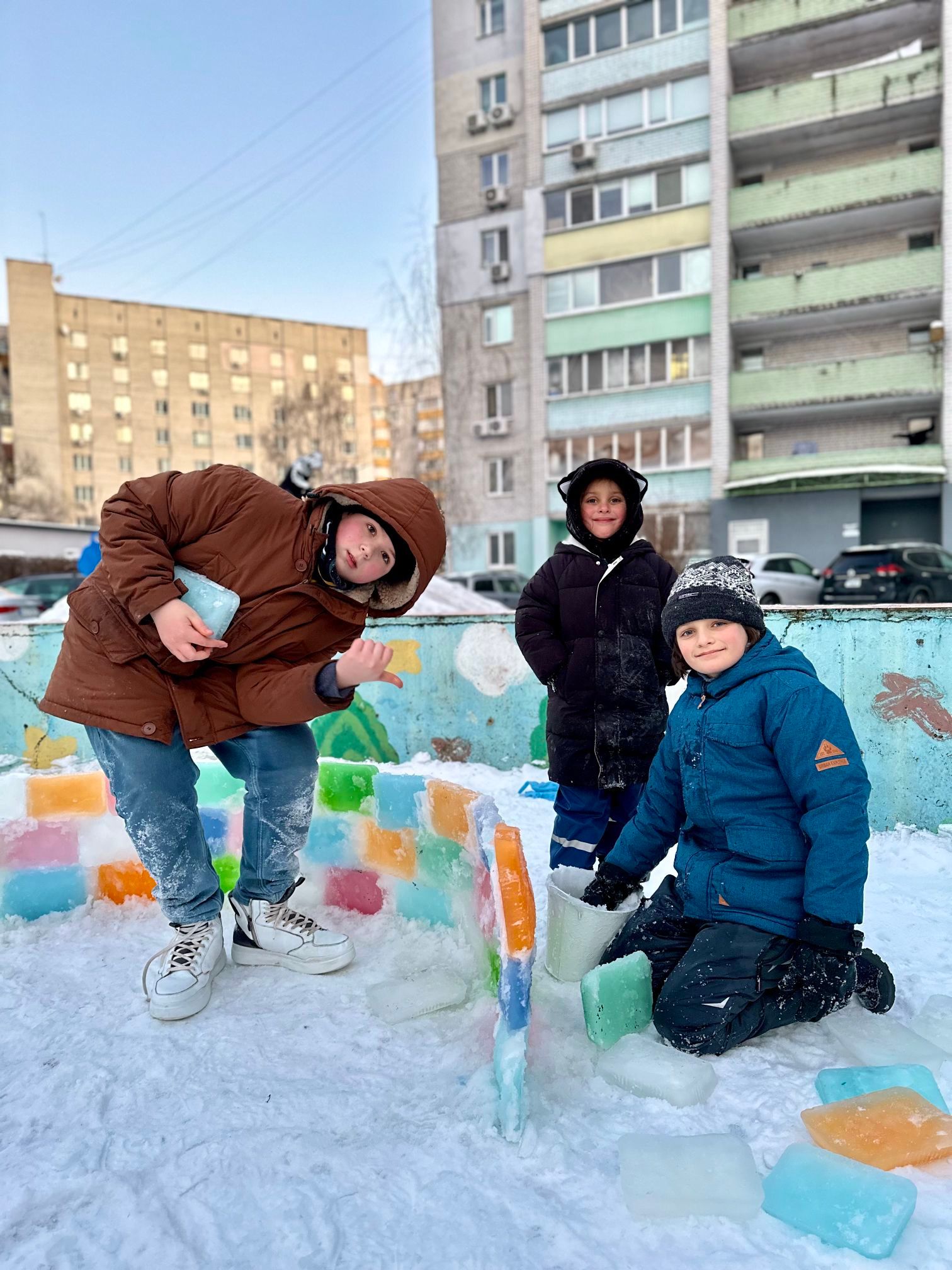 Инициатором создания ледяного домика стала многодетная творческая мама Кира Исаева. Ее поддержали Виктория Яровчик и Леся Шевель – жительницы соседних домов.