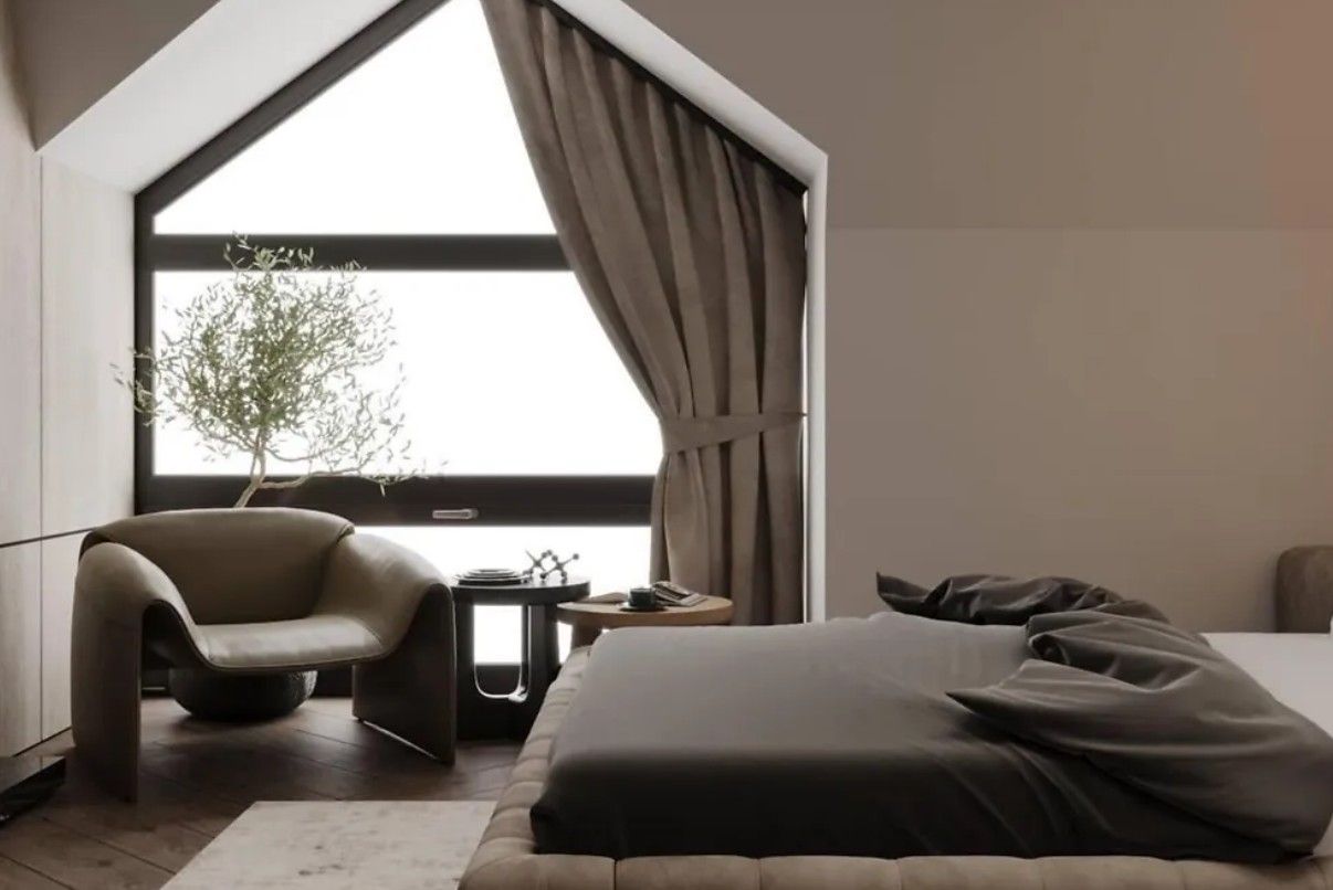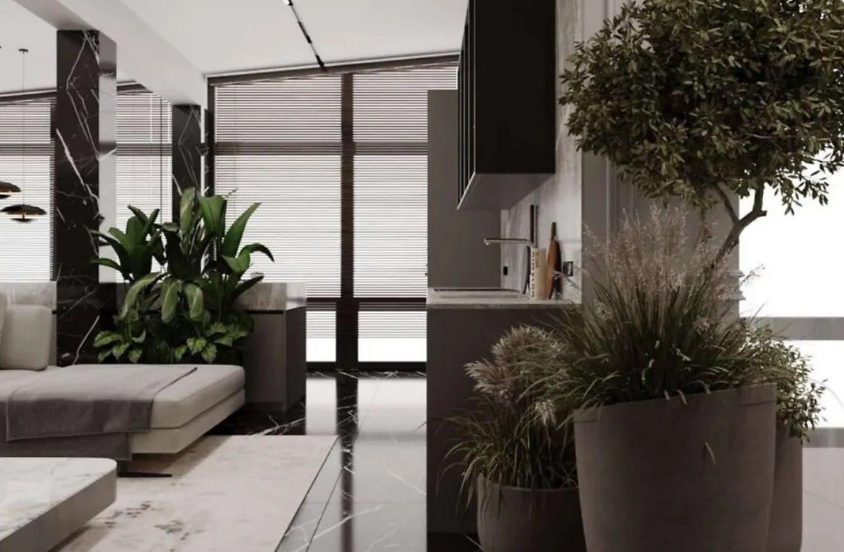 Житло має 2 спальні, 2 гардеробних, кухню-вітальню, 2 ванних кімнати та терасу.